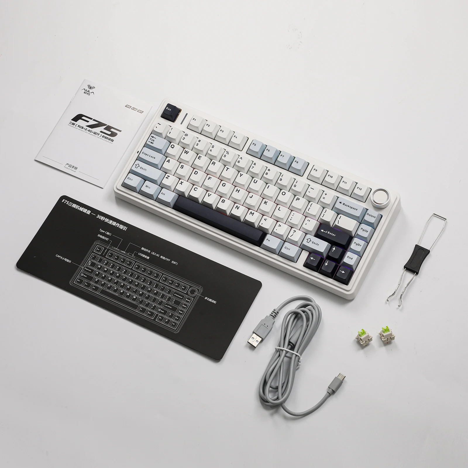 El F75 redefine la eficiencia del espacio con su diseño 75% compacto.Este diseño integra todas las teclas esenciales en un tamaño más pequeño, lo que lo hace perfecto para escritorios y configuraciones móviles optimizadas sin sacrificar la funcionalidad.
