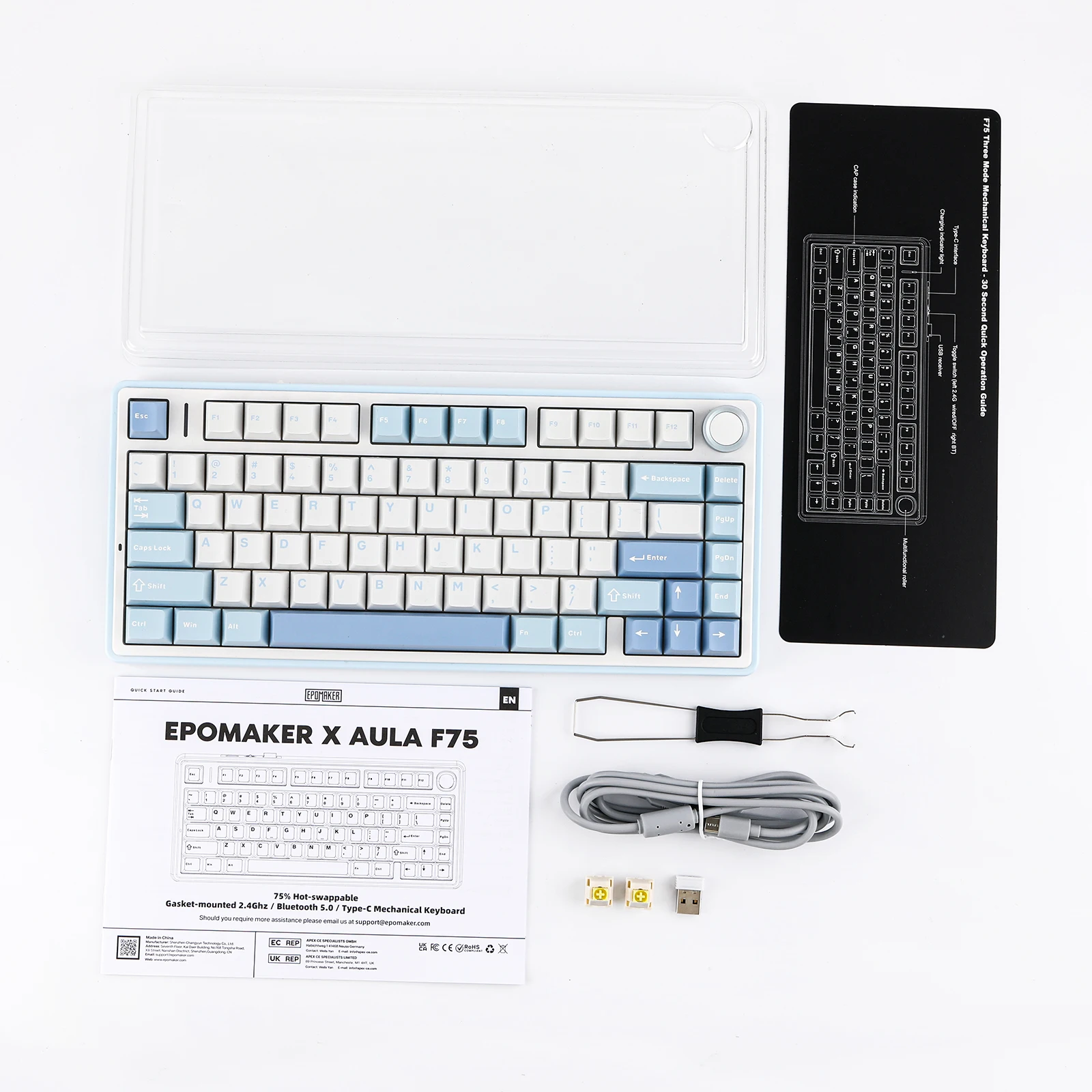 El F75 cuenta con un sonido de cinco capas y un diseño interno que absorbe los golpes, que incluye dos capas de espuma Poron, una almohadilla de interruptor IXPE, una almohadilla de mejora de sonido de PET y una almohadilla de silicona inferior.Esta construcción sofisticada reduce significativamente el ruido y la resonancia de la escritura, brindando un entorno de escritura tranquilo y enfocado.