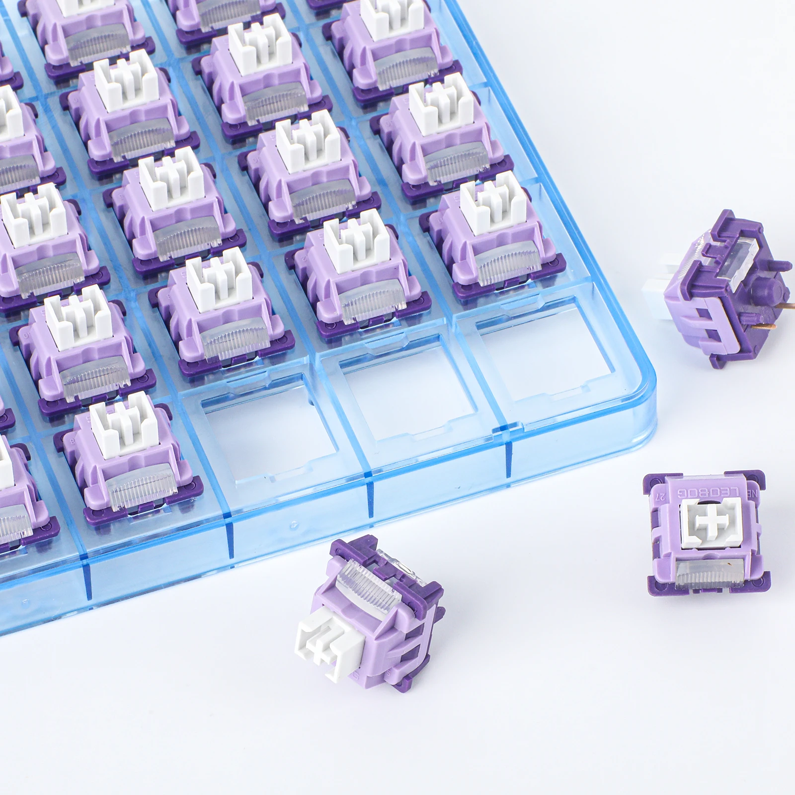 Viste tu teclado con el LEOBOG Purple King Switch, un toque de color púrpura que es tan divertido de ver como de usar. Estos interruptores proporcionan un toque ligero con solo 37g de fuerza, lo que facilita la escritura con los dedos. Y cuando llegues al Fondo a 45g, obtendrás un 'thock' suave que hace música para tus oídos sin ser demasiado alto. Perfecto para el mecanógrafo diario que quiere un poco de estilo y mucha comodidad.