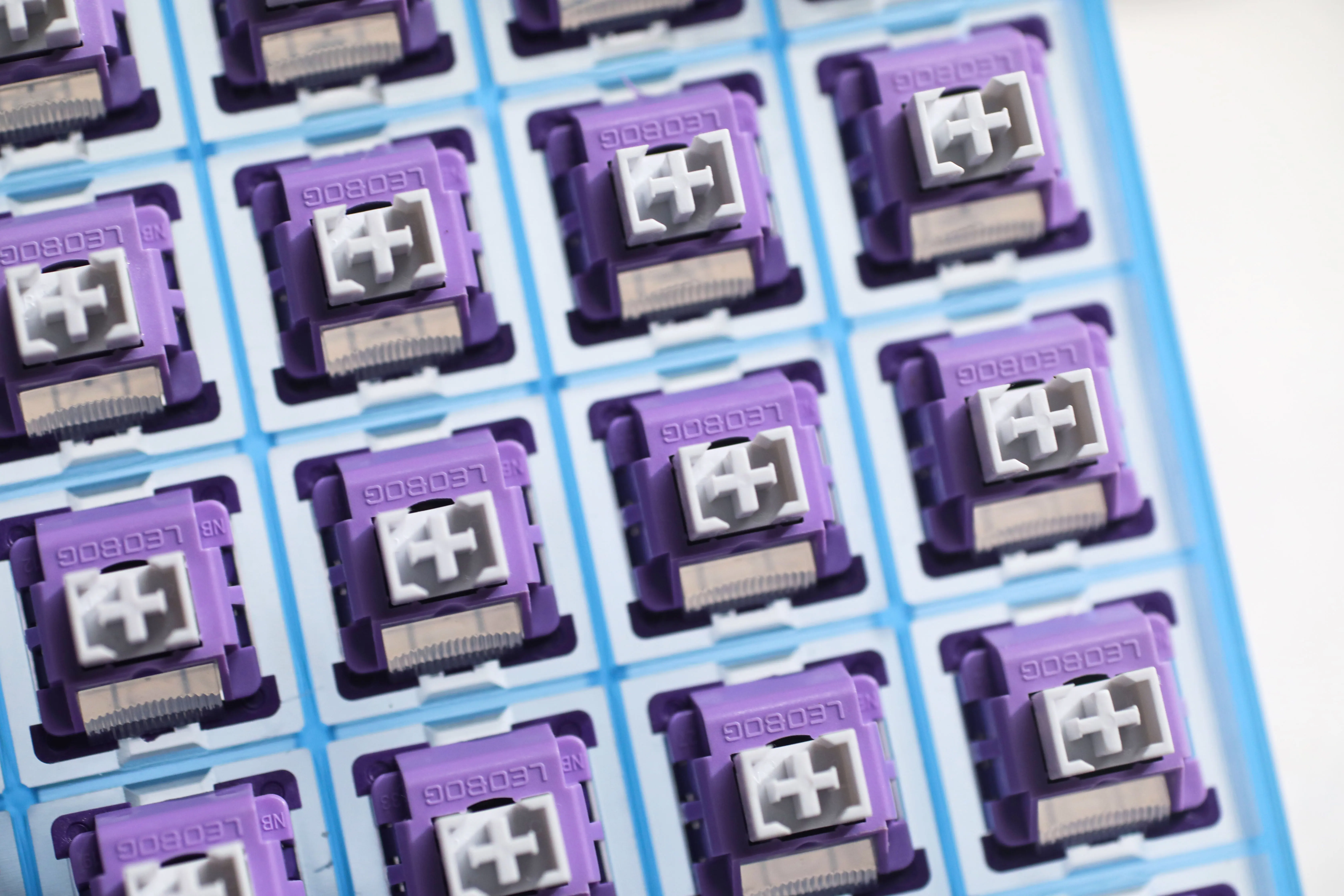 Los interruptores LEOBOG Purple King están diseñados para ser compatibles con la estructura general MX, ajustándose a la mayoría de los juegos de teclas con un vástago cruzado (X). Esta característica mejora su versatilidad, permitiendo un fácil reemplazo del interruptor y personalización del teclado.