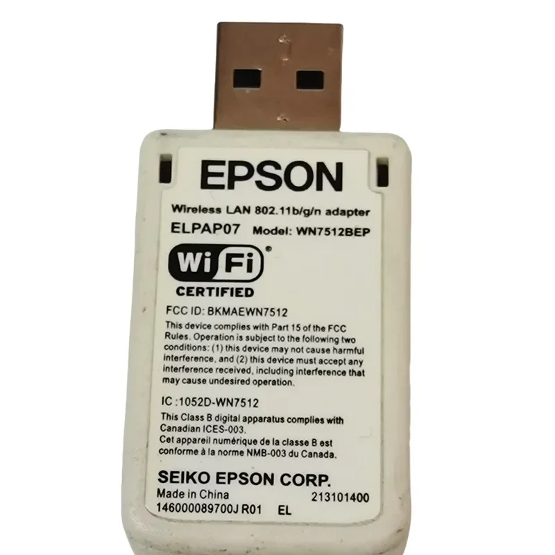 Compatible Main Units Epson 4855WU,Epson G6550WU,Epson 1985,Epson G6570WU,Epson EX3220,Epson Ex5230,Epson 1760W,Epson 1771W,Epson 1775W,Epson 1263W,Epson 1975W,Epson 1985WU,Epson 420,Epson 430,Epson 435W,Epson 4650,Epson 4750W,Epson 4770W,Epson 935W,Epson 95,Epson 955W,Epson 96W,Epson 99W,Epson D6150,Epson X17,Epson G6050WNL,Epson G6070W,Epson G6070WNL,Epson G6150NL,Epson G6170,Epson G6170NL,Epson G6270W,Epson G6450WU,Epson G6450WUNL,Epson G6470WU,Epson G6470WUNL,Epson G6550WUNL,Epson G6570WU,Epson G6570WUNL,Epson G6750WU,Epson G6750WUNL,Epson G6770WU,Epson G6770WUNL,Epson G6870NL,Epson G6970WUNL,Epson Z8150NL,Epson Z8250NL,Epson Z8255NL,Epson Z8350WNL,Epson Z8455WUNL,Epson 435Wi,Epson 436Wi,Epson 475Wi,Epson 480i,Epson 485Wi,Epson 536Wi,Epson 575Wi,Epson 1410Wi,Epson 1420Wi,Epson 520,Epson 525W,Epson 530,Epson 535W,Epson 570,Epson 575W,Epson 580,Epson 955WH,Epson 965H,Epson 97H,Epson 98H,Epson 99WH,Epson S27,Epson W29,Epson X27 Epson EB-Z8455WUNL,Epson EB-Z8455WU,Epson EB-Z8450WUNL,Epson EB-Z8450WU,Epson EB-Z8355WNL,Epson EB-Z8355W,Epson EB-Z8350WNL,Epson EB-Z8350W,Epson EB-Z8150NL,Epson EB-Z8150,Epson EB-Z10005NL,Epson EB-Z10005,Epson EB-Z10000NL,Epson EB-Z10000,Epson EB-G6650WU,Epson EB-G6550WU,Epson EB-G6450WU,Epson EB-G6350,Epson EB-G6250W,Epson EB-G6050W,Epson EB-D6250,Epson EB-D6155W,Epson EB-96W [240v],Epson EB-95 [240v],Epson EB-93 [240v] with Educ Lamp Warranty,Epson EB-925 [240v],Epson EB-915W,Epson EB-905,Epson EB-485Wi,Epson EB-485W,Epson EB-480,Epson EB-475Wi,Epson EB-475W,Epson EB-4750W,Epson EB-470,Epson EB-435W,Epson EB-430,Epson EB-425W,Epson EB-420,Epson EB-1955,Epson EB-1775W,Epson EB-1770W,Epson EB-1760W,Epson EB-1410Wi,Epson EB-1400Wi,EH-TW6600W,EH-TW570 with HC lamp warranty,EH-TW570,EH-TW5200,EH-TW5100,EH-TW490,EB-Z9900W,EB-X24,EB-X18,EB-X03,EB-W28,EB-W18,EB-W03,EB-S18,EB-S17,EB-S03,EB-98,EB-965,EB-955W,EB-945,EB-4950WU,EB-4850WU,EB-4770W,EB-4650,EB-4550 Package Include: 1 x Epson ELPAP07 Wireless LAN Module for Select Projectors,UsedComprar EPSON ELPAP07 WN7512BEP Adaptador USB LAN sin cables para proyector EPSON