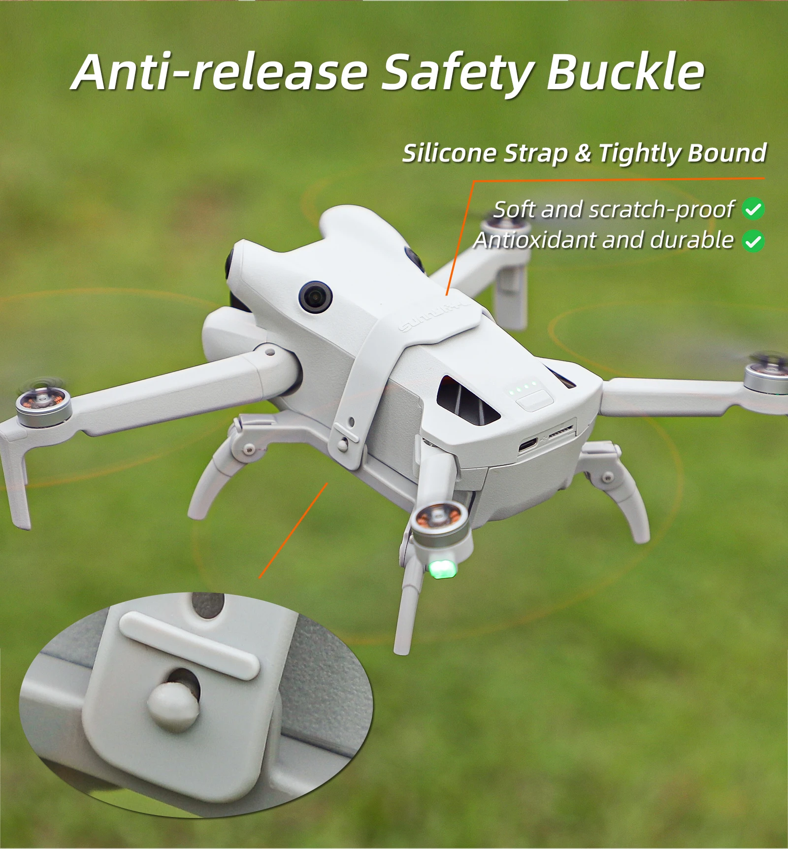 4. Correas de silicona suave, cierres de cabeza de hongo anticaída, bien empaquetados y mejorados para protección.