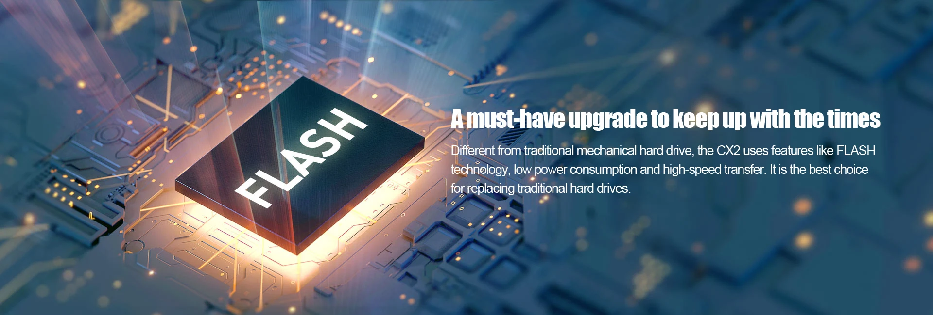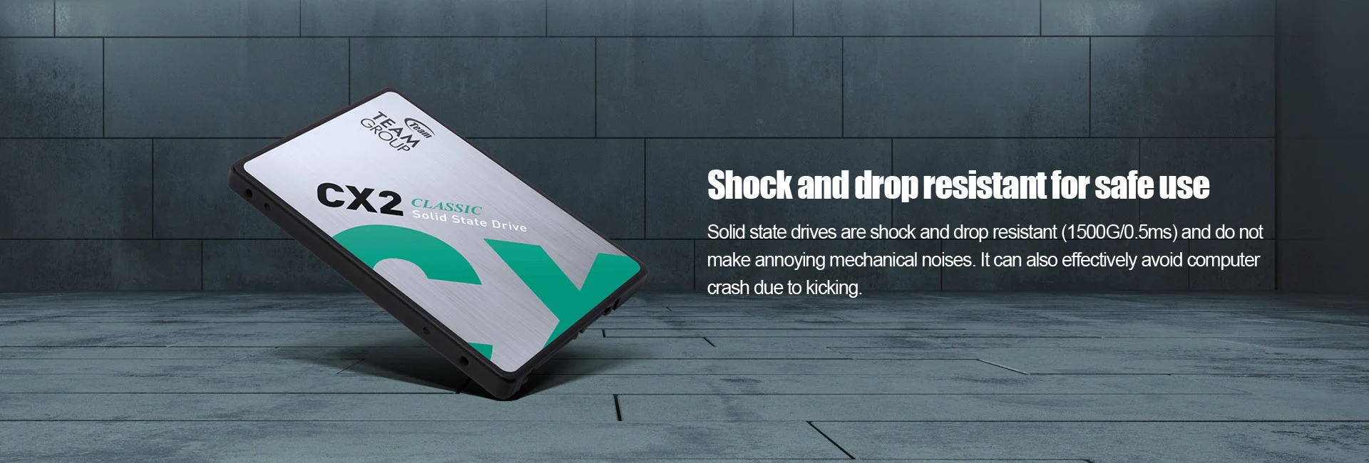 Las unidades de estado sólido CX2 son resistentes a golpes y caídas (1500G/0,5 ms) y no hacen ruidos mecánicos molestos. También puede evitar eficazmente el bloqueo de la computadora debido a las patadas.