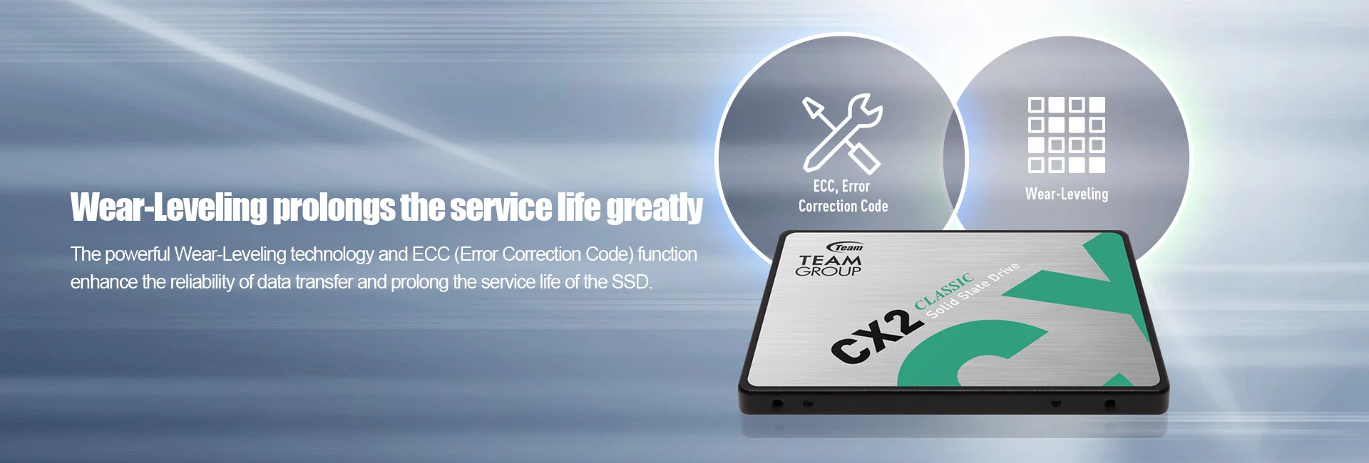 La potente tecnología de nivelación de desgaste y la función ECC (Código de corrección de errores) mejoran la fiabilidad de la transferencia de datos y prolonga la vida útil del SSD.