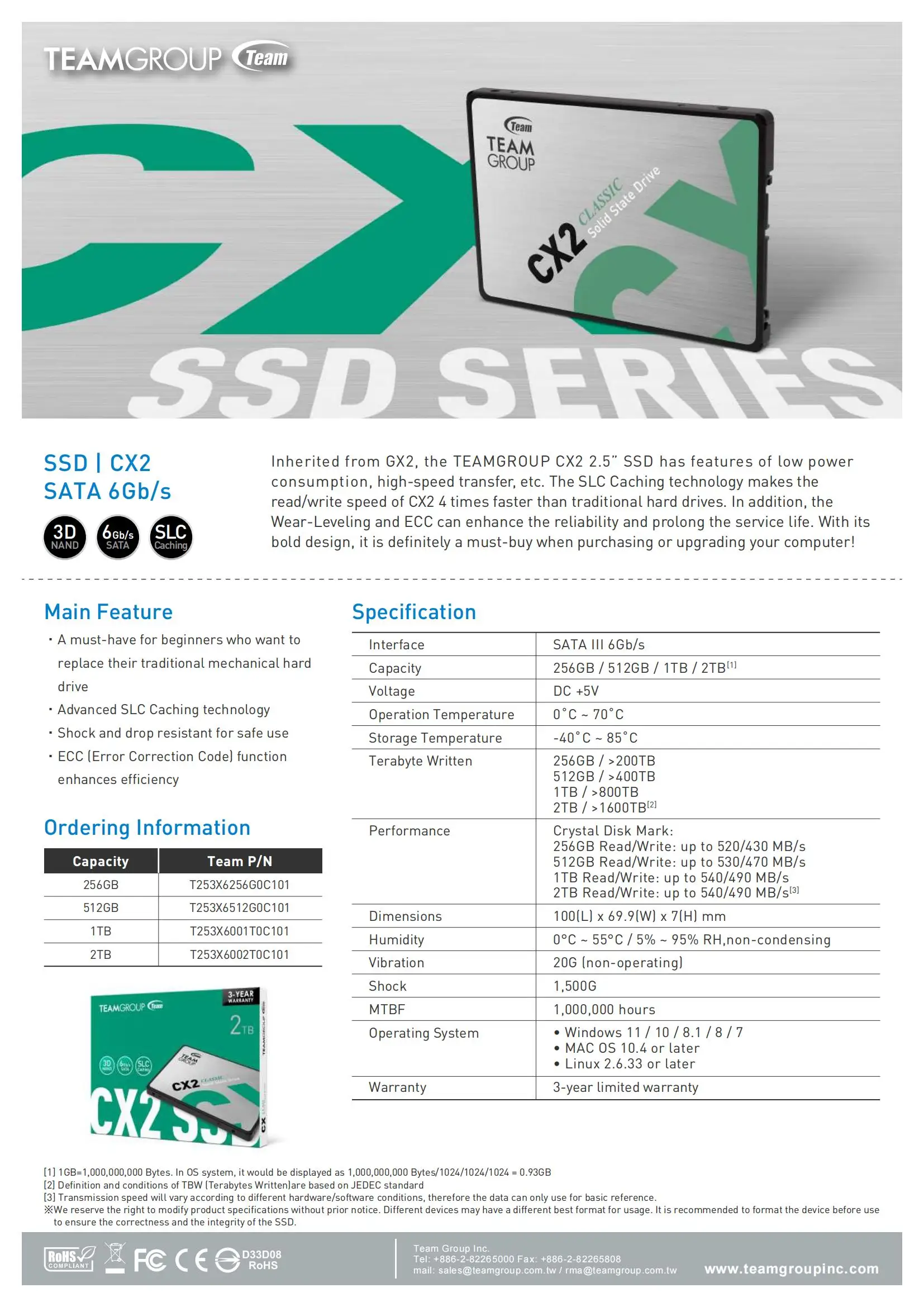 • Alta capacidad de almacenamiento:La unidad de estado sólido Team Group CX2 ofrece hasta 1TB de almacenamiento, lo que proporciona un amplio espacio para sus necesidades digitales.