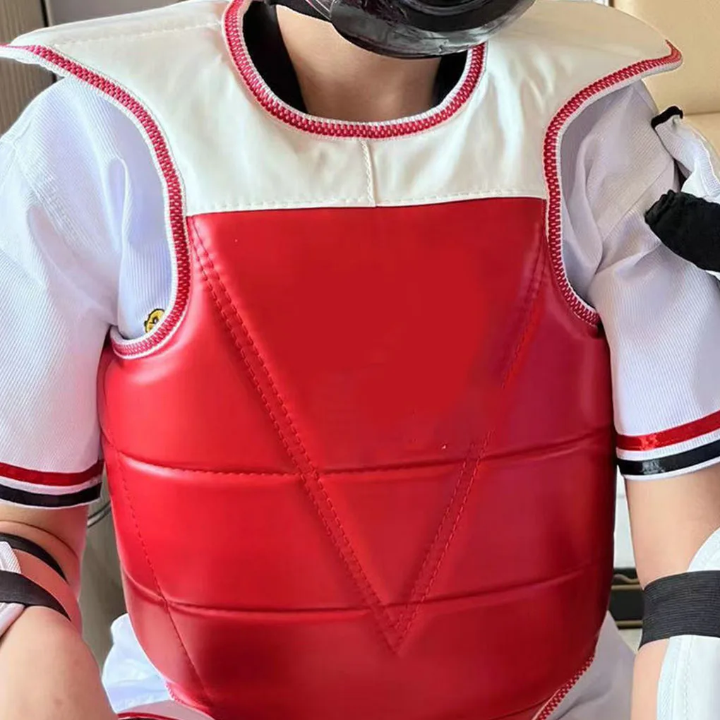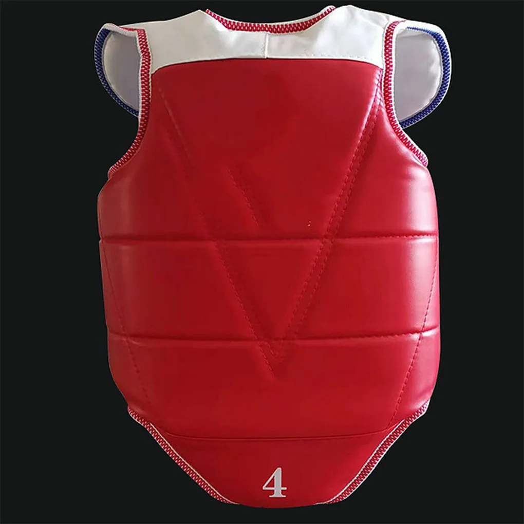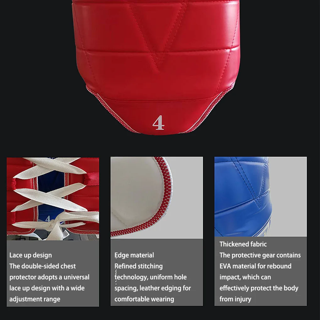 Lados dobles: el protector de pecho de taekwondo adopta tela gruesa, fácil de usar, protección de seguridad, resistente al desgaste, diseño de banda trasera, se puede ajustar libremente