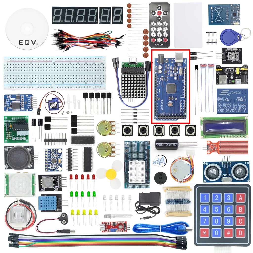 Kit de inicio completo del proyecto EQV Mega 2560 que incluye LCD1602 IIC, sensor ultrasónico para Arduino con tutorial