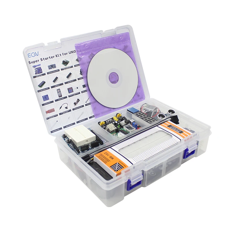Kit de súper arranque EQV para Arduino UNO R3 - Uno R3 Placa de pruebas/motor paso a paso/servo SG90/1602 LCD/cable de puente/tutorial de CD