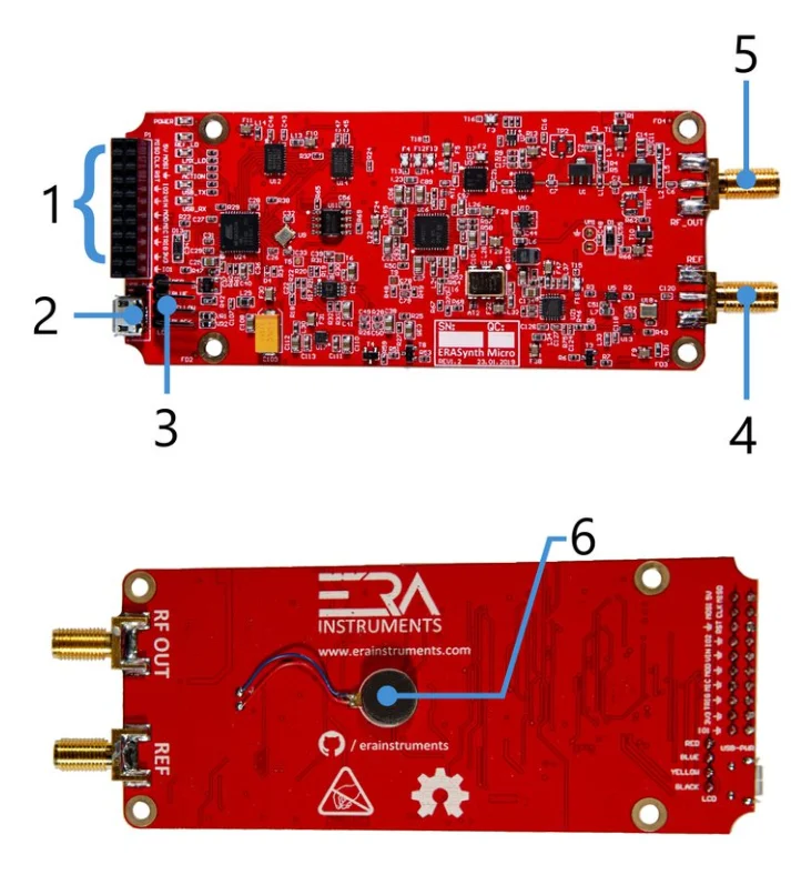 ERASynth Micro es para cualquier persona interesada en pruebas de RF. A continuación se muestra una lista breve de áreas de aplicación donde los usuarios pueden aprovechar las pruebas de RF de ERASynth Micro: de uso general. Por ejemplo, para medir la ganancia de un amplificador, ERASynth Micro se puede utilizar como fuente de estímulo. Fuente de señal de prueba para SDR. Las personas que utilicen cualquiera de muchas plataformas SDR pueden utilizar ERASynth Micro como fuente de señal de prueba para probar y calibrar sus dispositivos SDR. Una fuente LO ágil para convertidores hacia arriba y hacia abajo. Fuente de reloj para ADC y DAC.