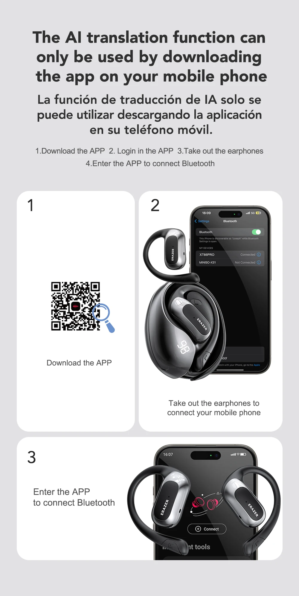 Comprar ERAZER X5 OWS auriculares inalámbricos ultraligeros comodidad AI traductor auriculares Gaming Bluetooth 5,4 auriculares potencia pantalla Digital