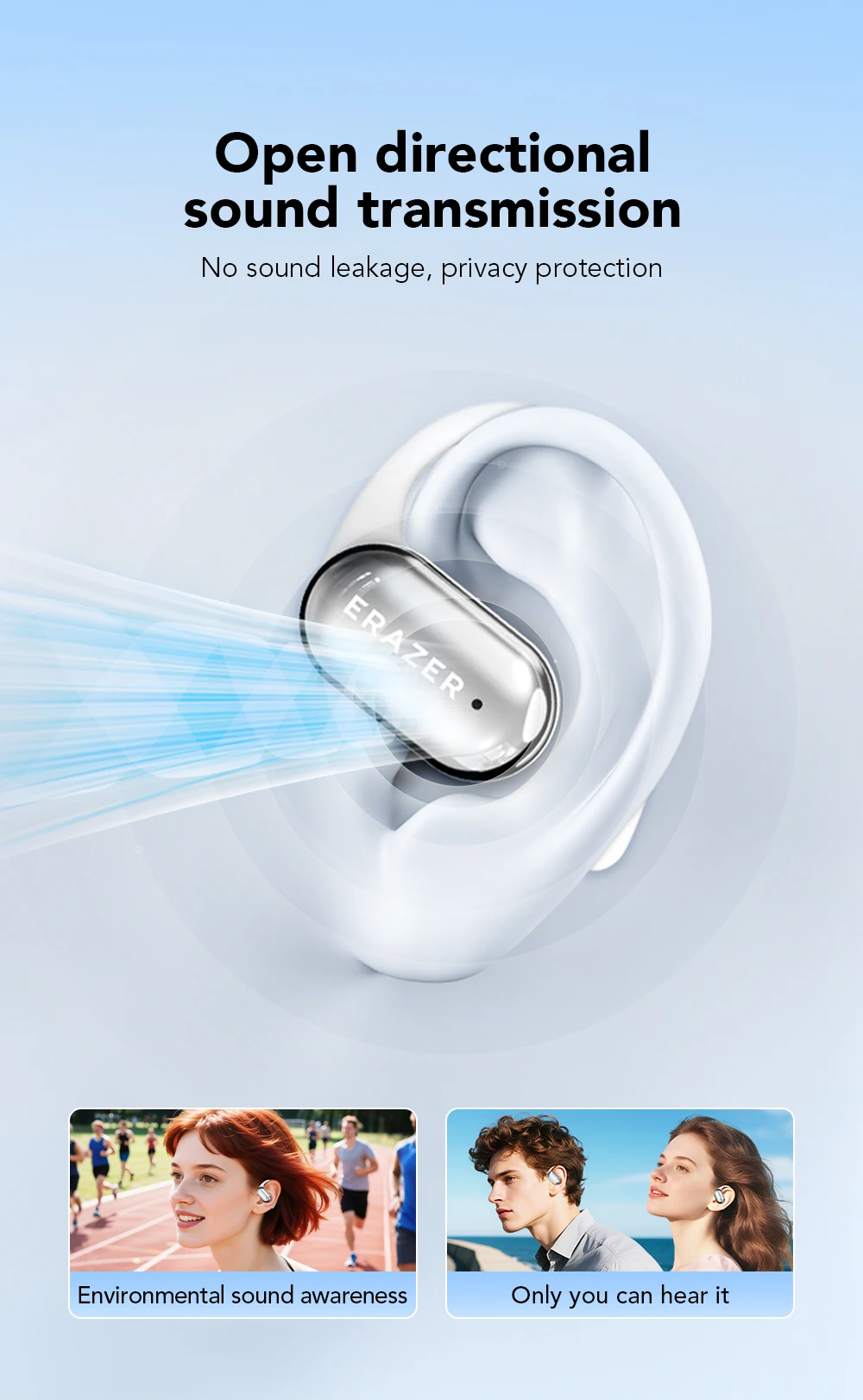 entregando graves profundos y agudos nítidos a cualquier volumen.Diseñado para brindar comodidad al oído abierto, disfrute de un sonido envolvente sin comprometer la conciencia: perfecto para entrenamientos, desplazamientos o aventuras cotidianas.Aumenta la energía, siente cada ritmo.