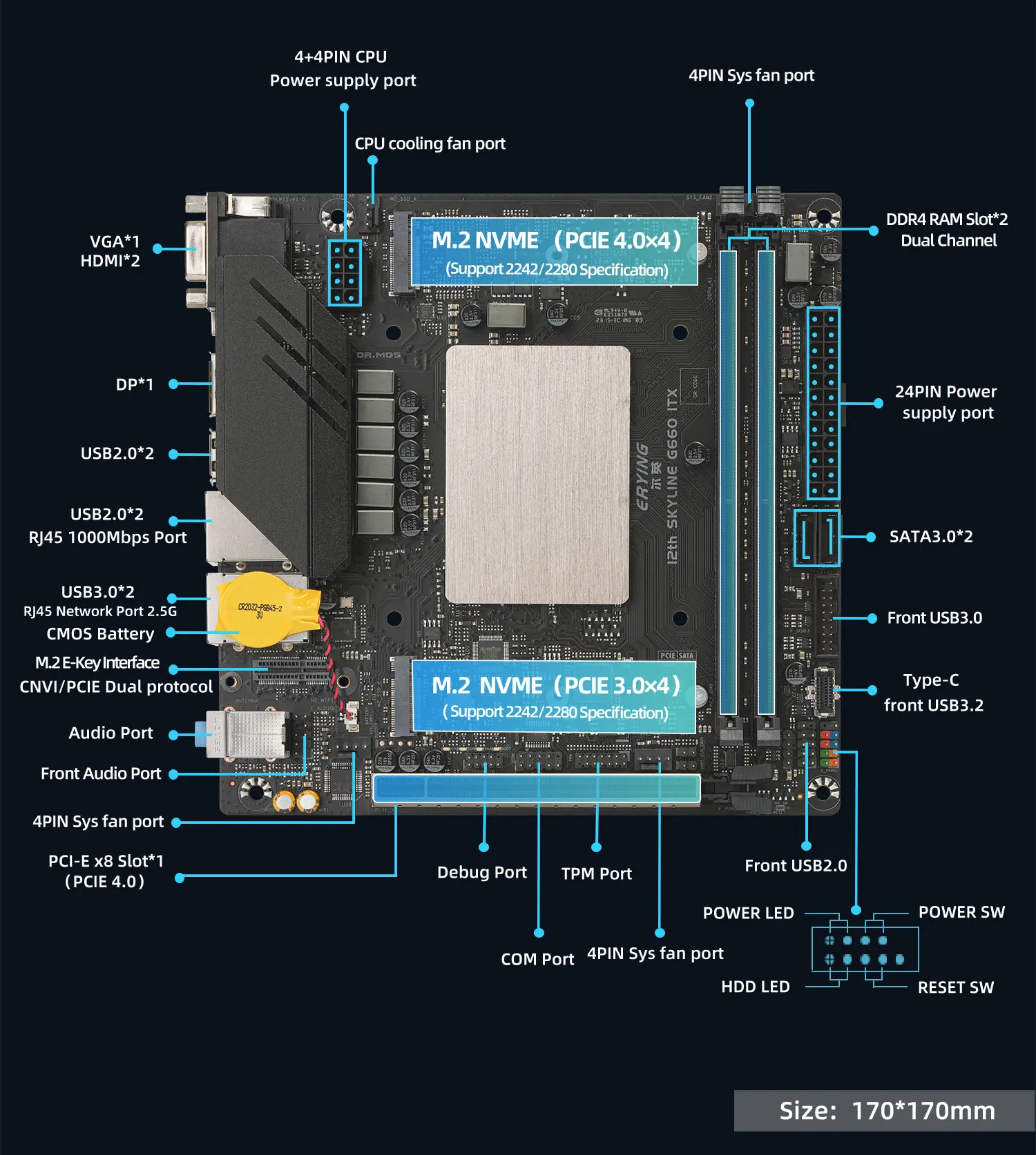 Comprar ERYING-Conjunto de placa base de escritorio M-ITX, Kit de CPU integrado, Interpose Core i7 12800H i7-12800H B660 DDR4, PC para juegos