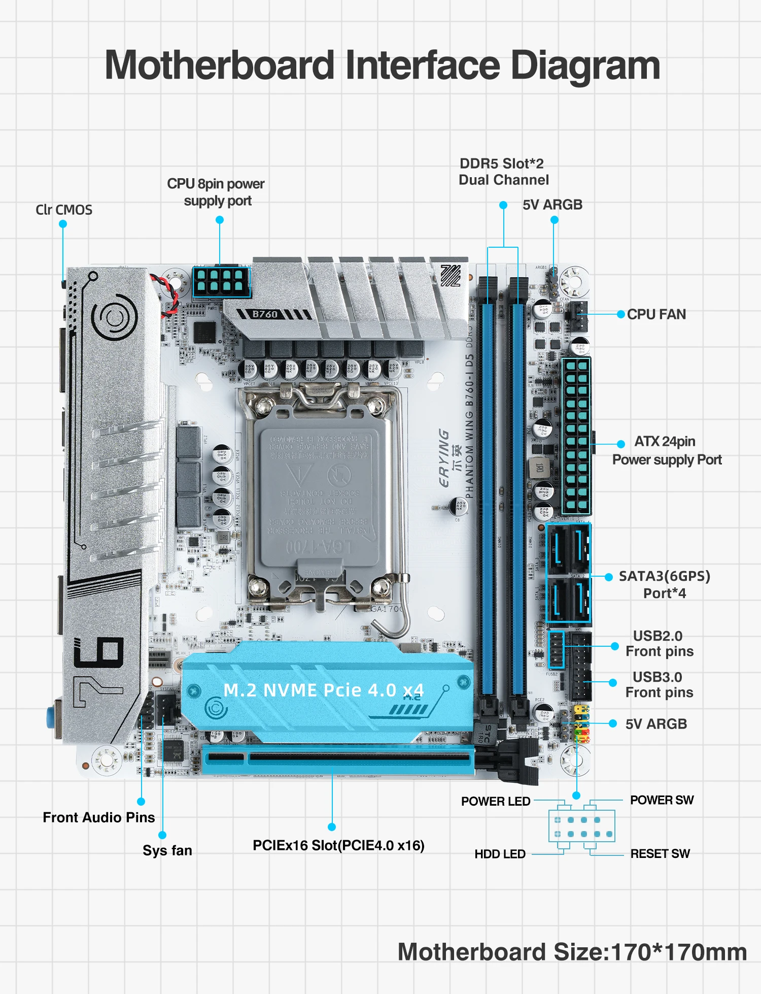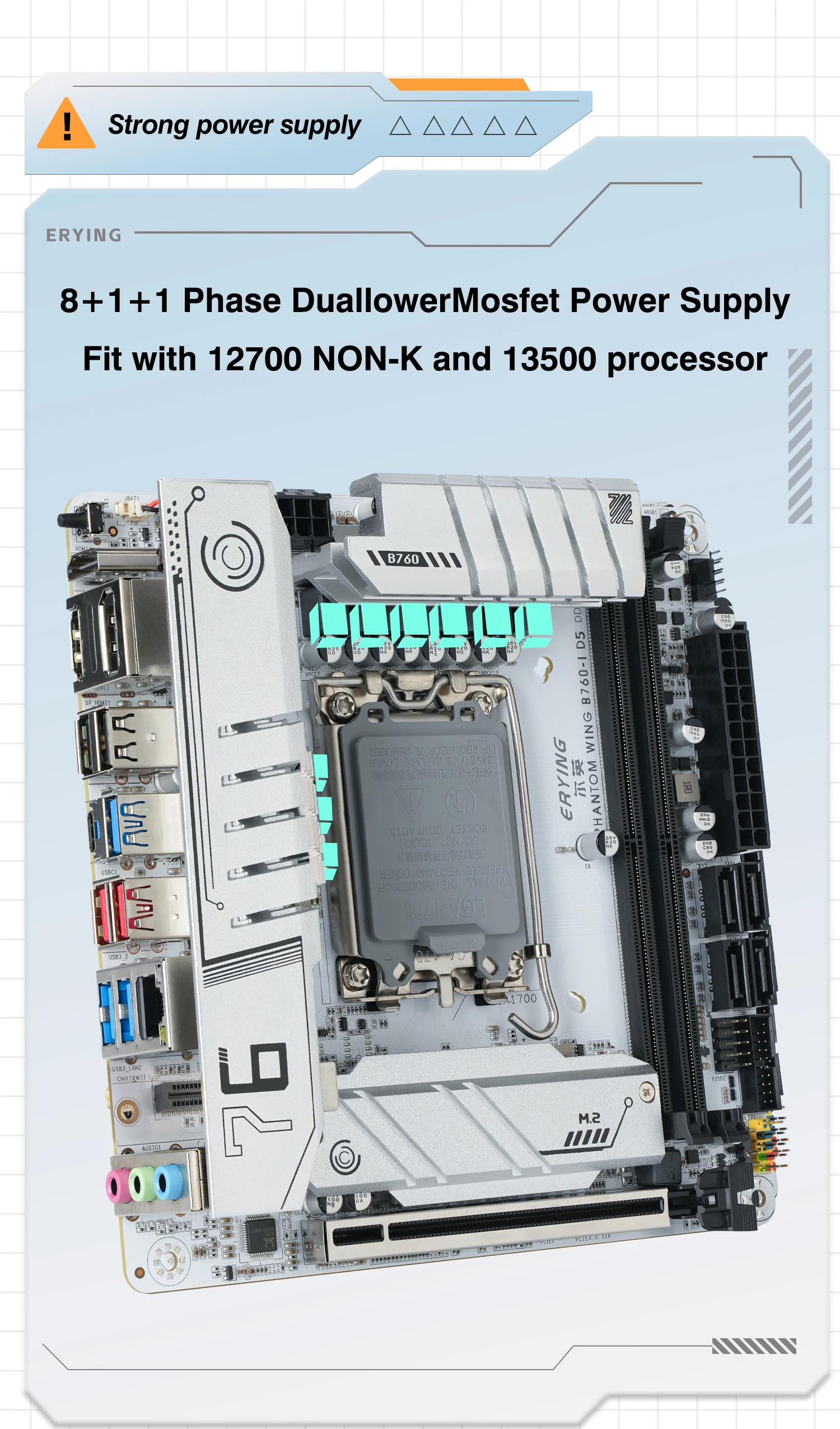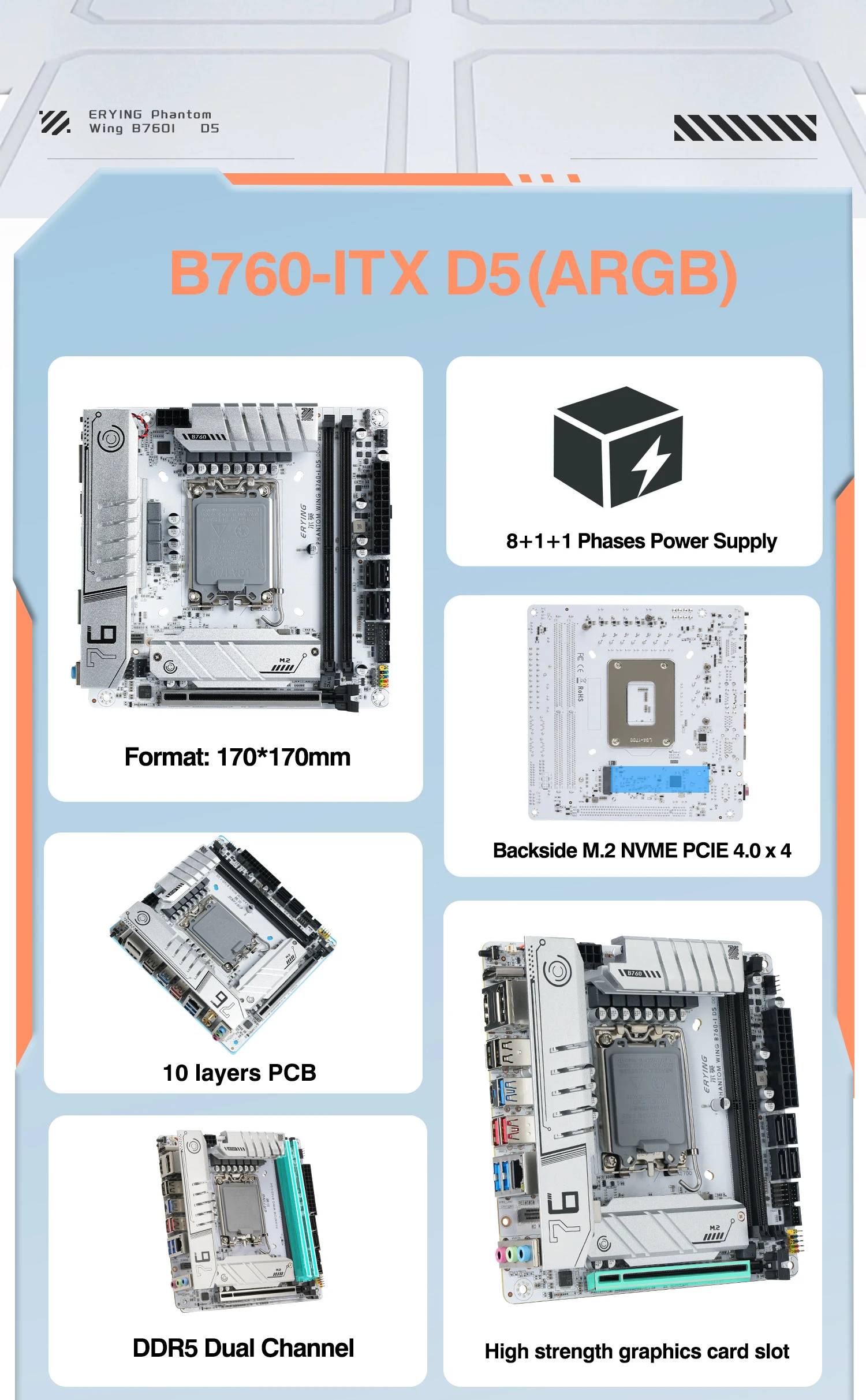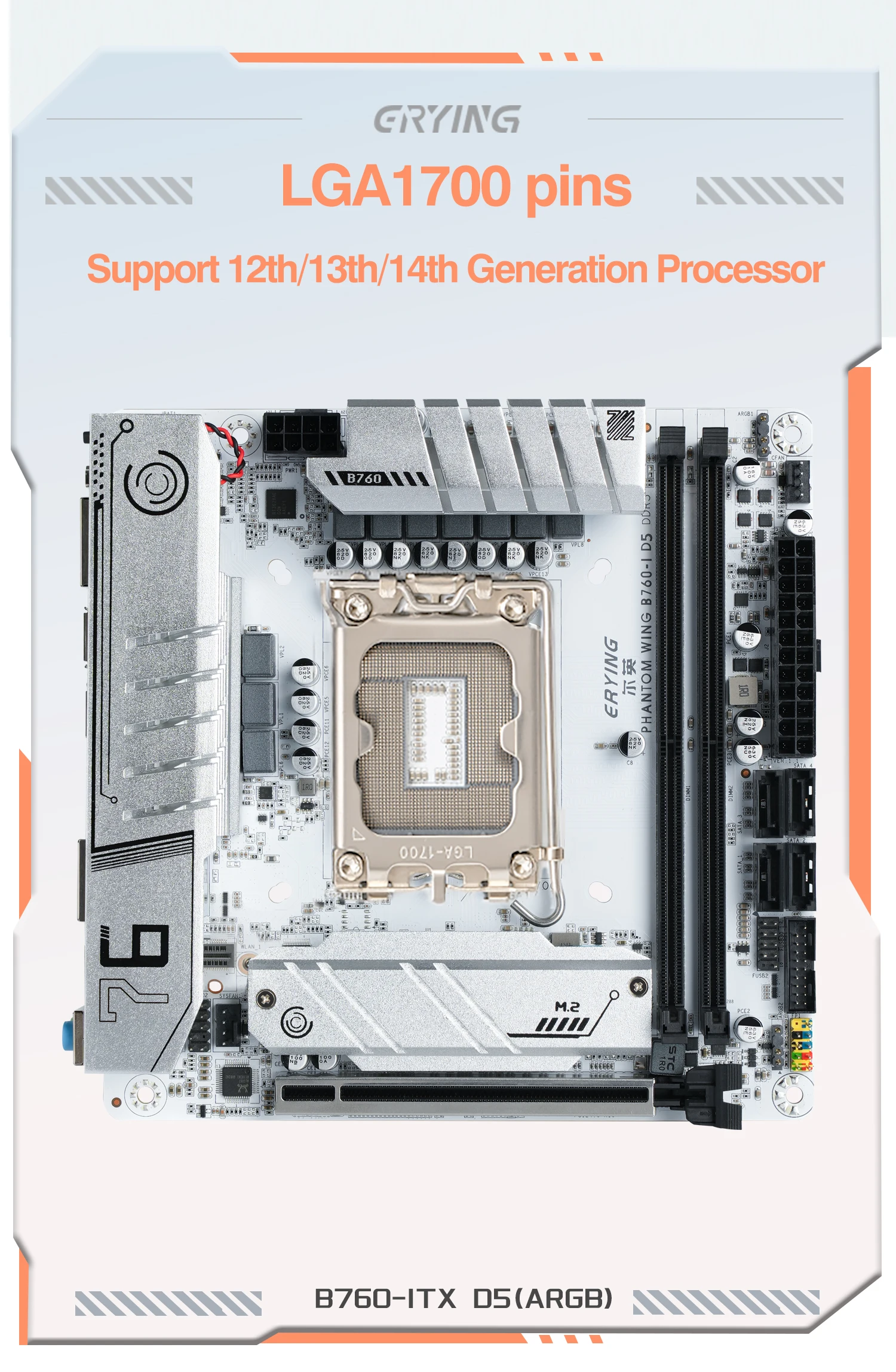 Comprar ERYING ITX B760i Placa base para juegos ARGB LGA 1700 115x Soporte Core 12/13/14th i9/i7/i5/i3/Pentium RAM DDR5 de doble canal Blanco