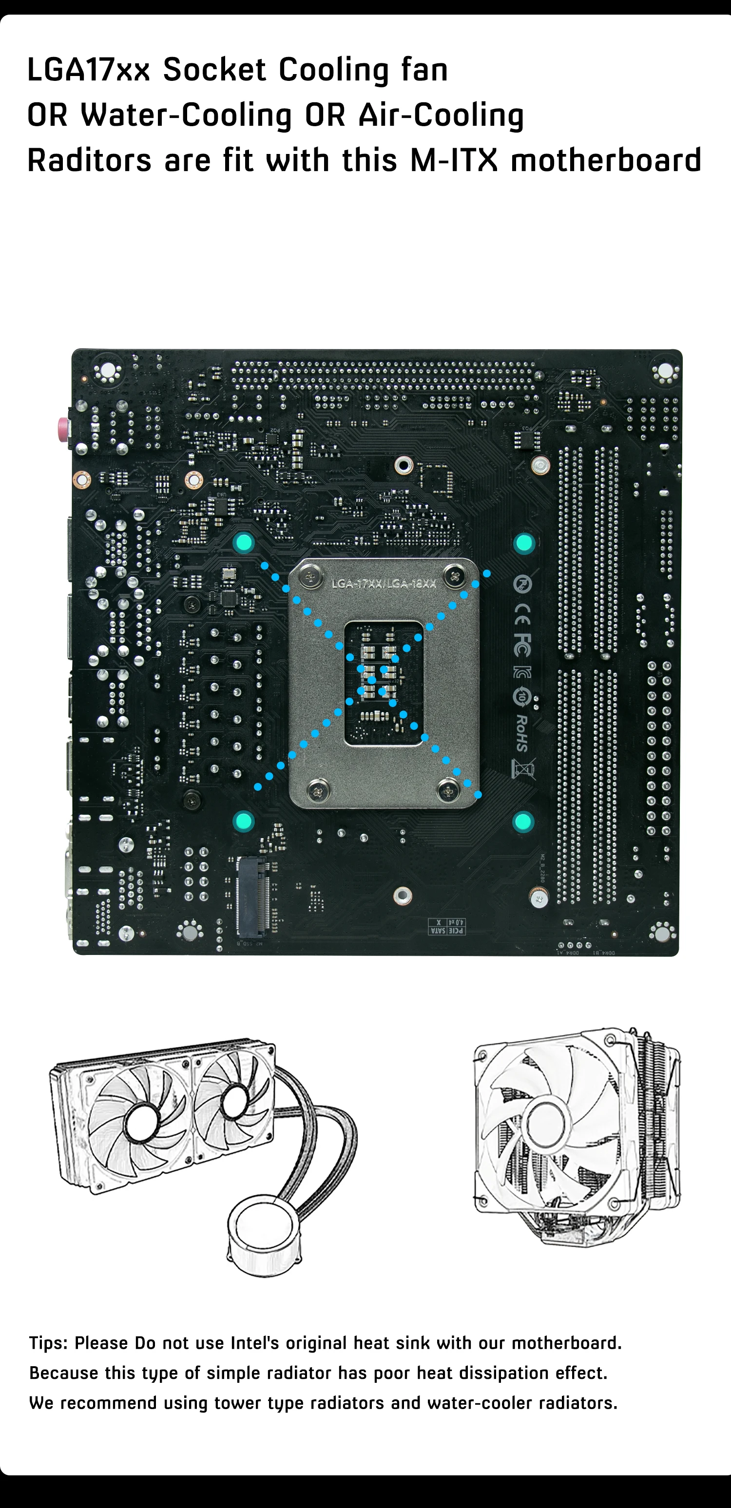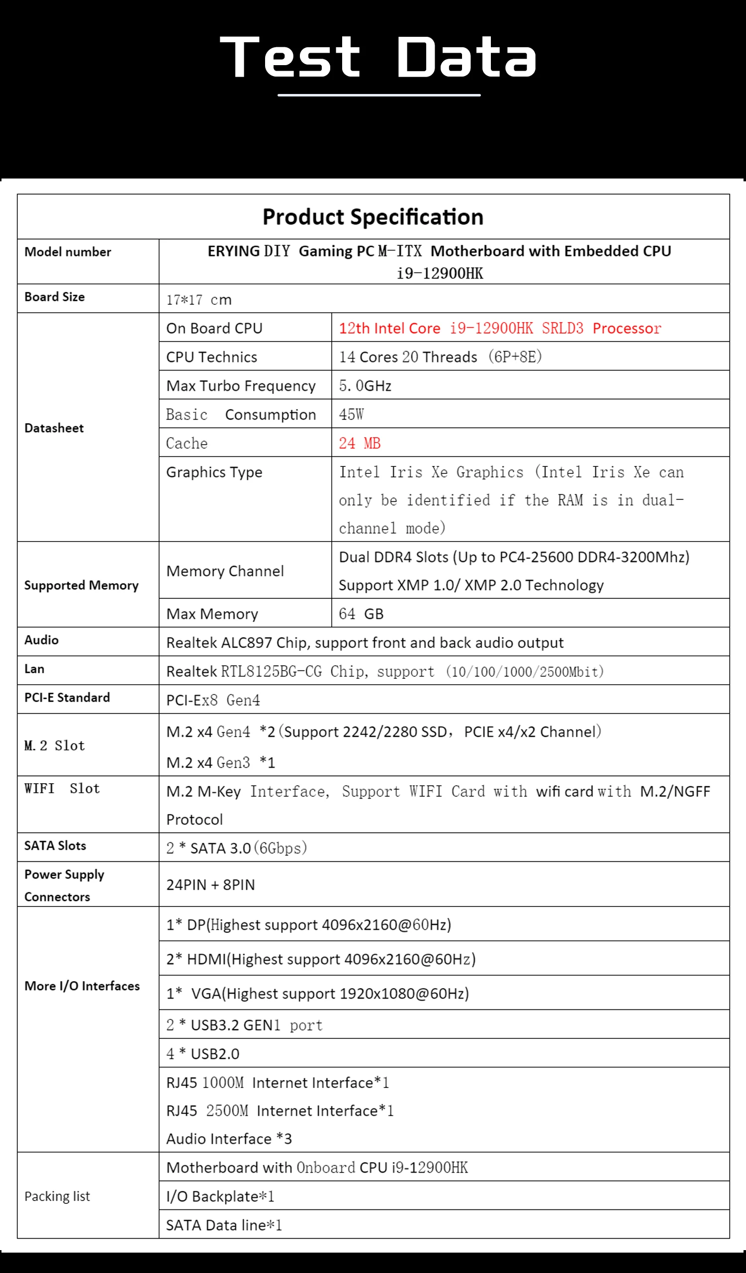 ERYING M-ITX Juego de placa base de computadoras de escritorio con kit de núcleo de CPU integrado i9 12900HK i9-12900HK SRLD3 + Enfriador de aire de CPU pulsador ER6175-LP