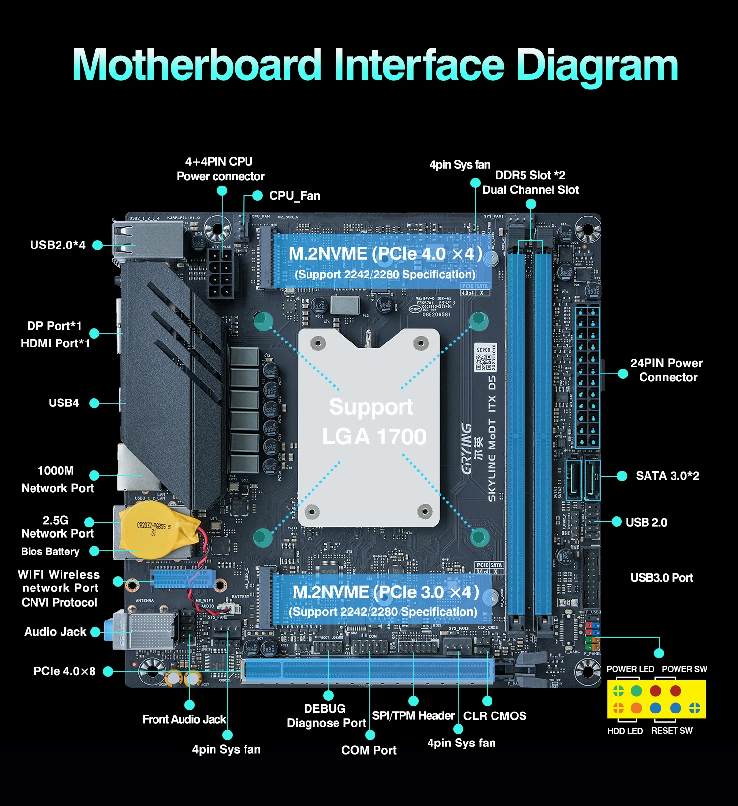 Comprar ERYING Mini ITX DIY placa base de ordenador para juegos CPU Combo Interposer Kit i7 12700H 14C20T CPU integrada DDR5 RAM NVME LGA1700