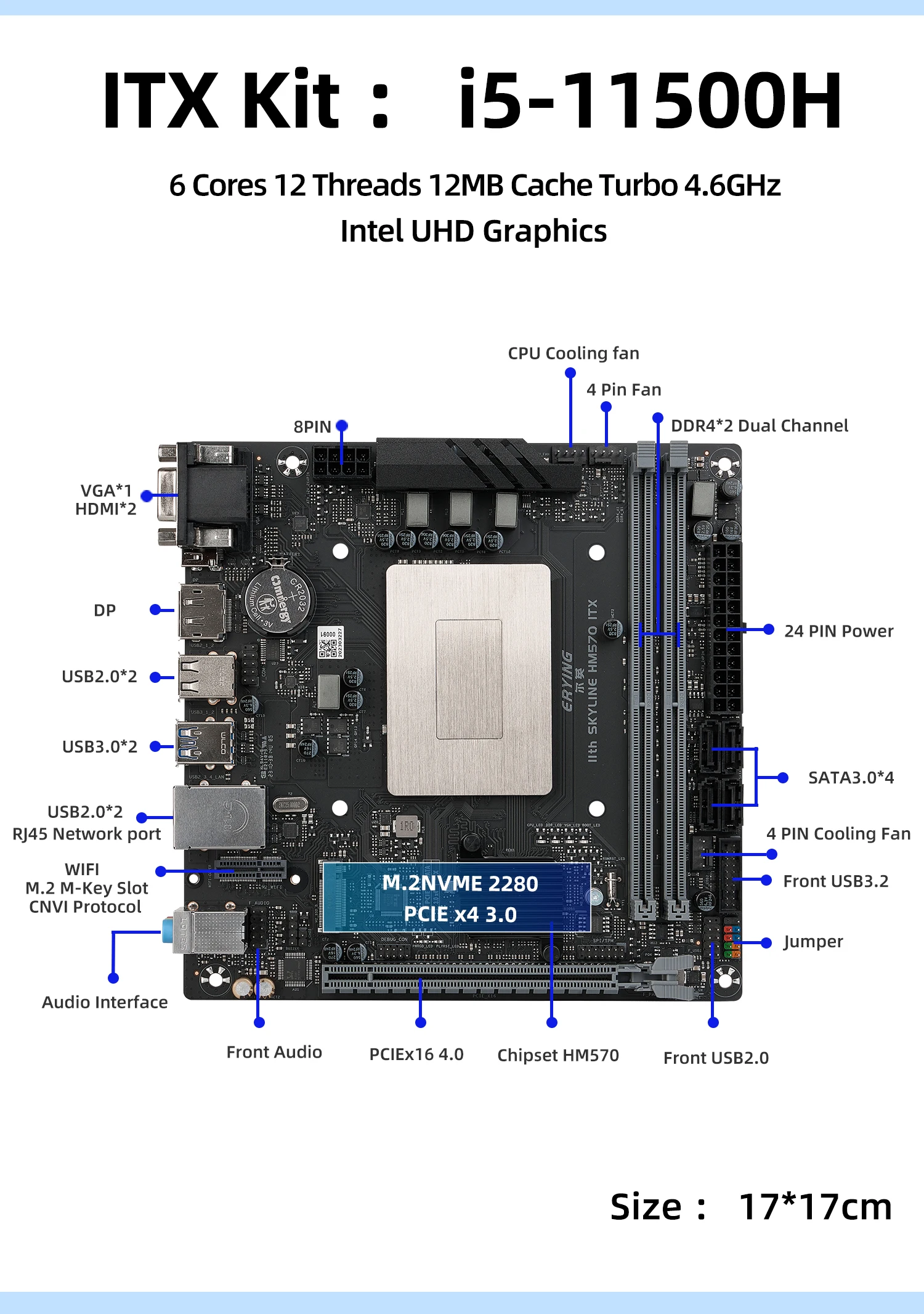 ERYING M-ITX B560i Juego de placa base de escritorio con kit de CPU integrado Interporser Core i5 11500H i5-11500H SRKT2 (NO ES) Computadoras PC para juegos DDR4 6C12T 17*17CM