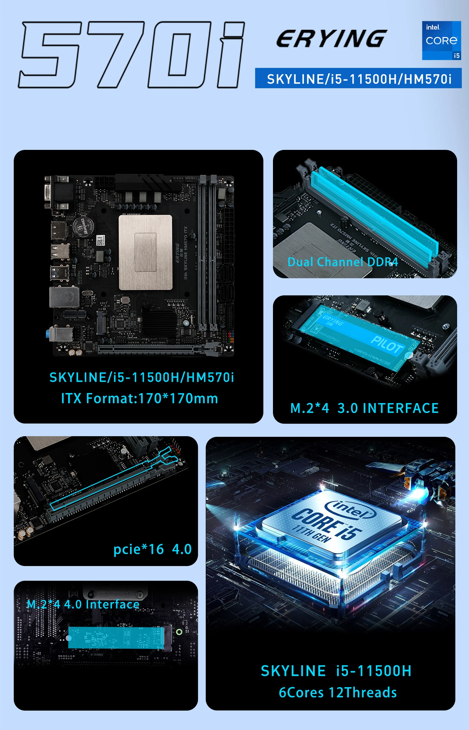 ERYING M-ITX B560i Juego de placa base de escritorio con kit de CPU integrado i5 11500H SRKT2+16GB DDR4 3200Mhz+512GB NVMe M.2 PC para juegos 17*17cm