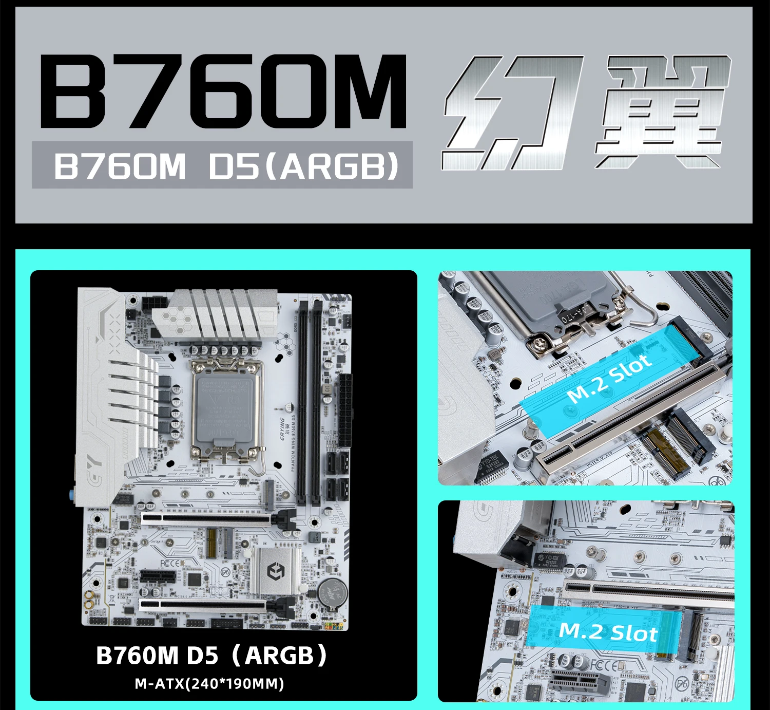 Comprar ERYING-placa base de escritorio B760M DDR5, LGA1700, mATX ARGB, compatible con CPU de 14. ª generación, 12. ª generación, M.2, PCIEX16, 4,0