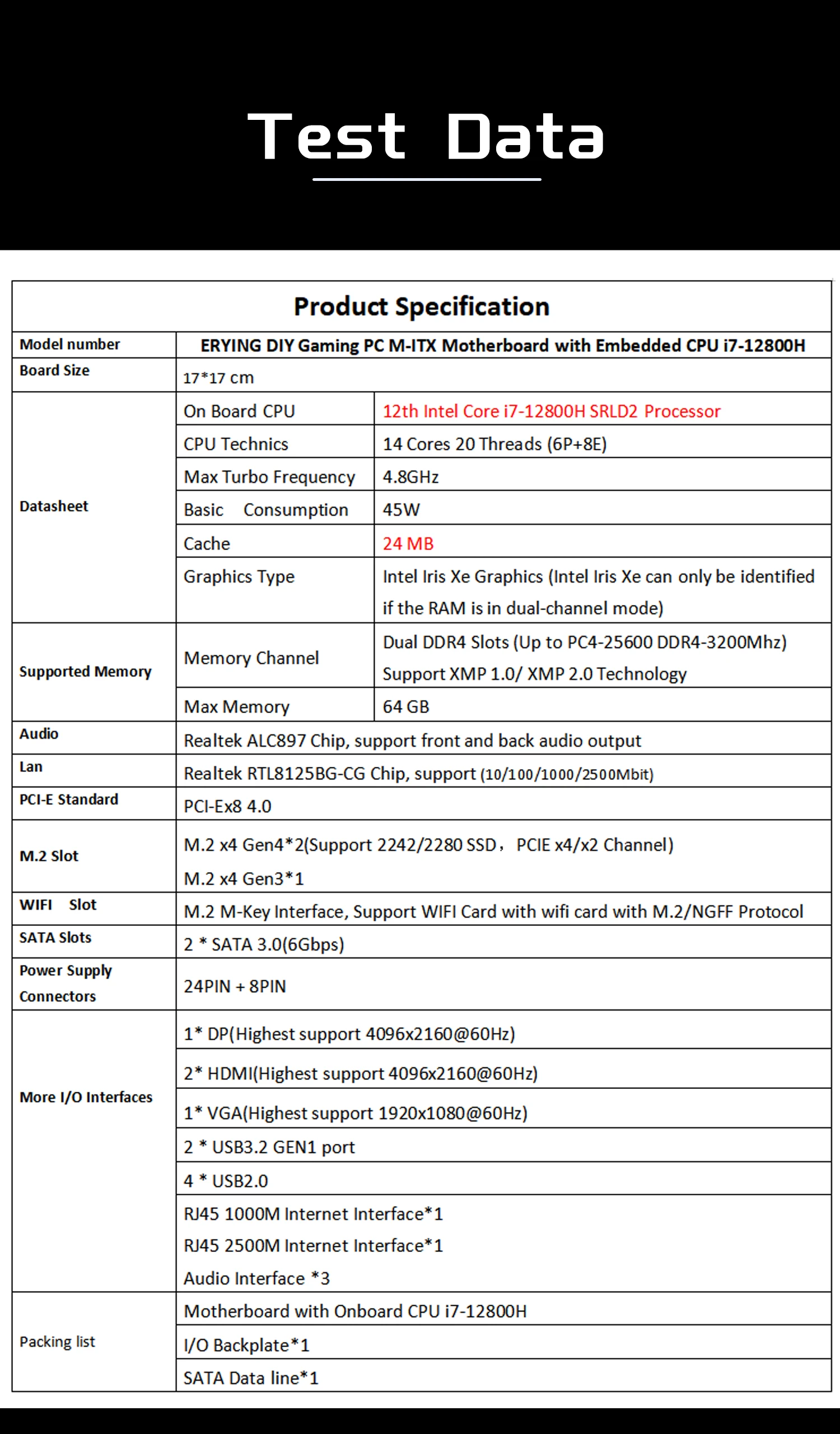 Comprar ERYING-placa base de escritorio M-ITX, Kit de interposición de CPU integrada, Core i7 12800H + CPU Push-down, Enfriador de aire, ER6175-LP, PC para juegos