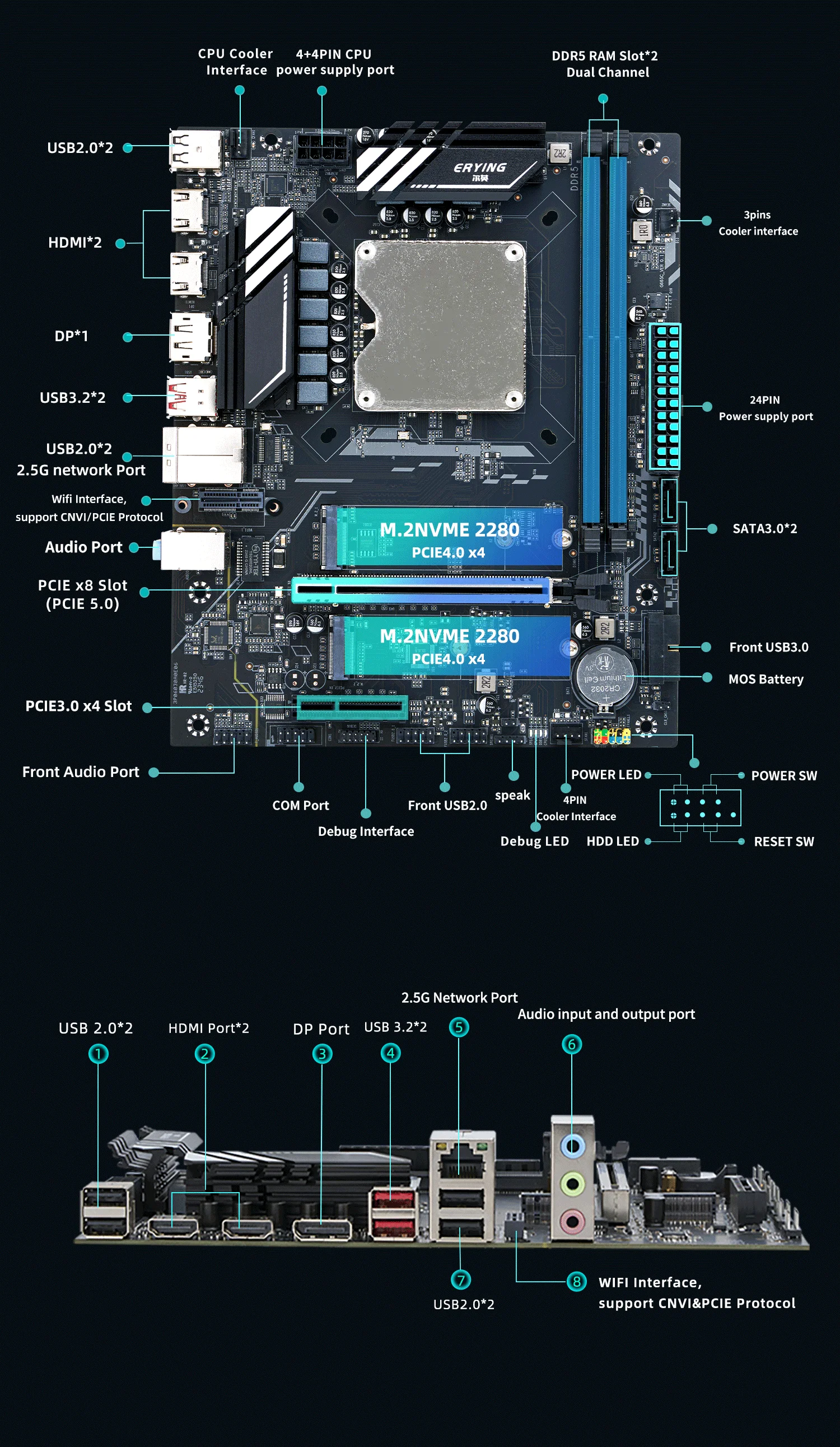 Comprar ERYING-placa base con núcleo integrado para juegos de PC, Kit de intercomunicador de CPU i7, 13620H, i7-13620H, 10C16T, DDR5, RAM