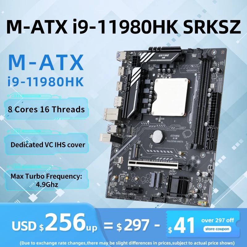 Comprar ERYING-placa base con núcleo integrado para PC, Kit de intercomunicador de CPU, i9, 11980HK, i9-11980HK, 2,6 GHz, 8C16T, DDR4, VC, IHS