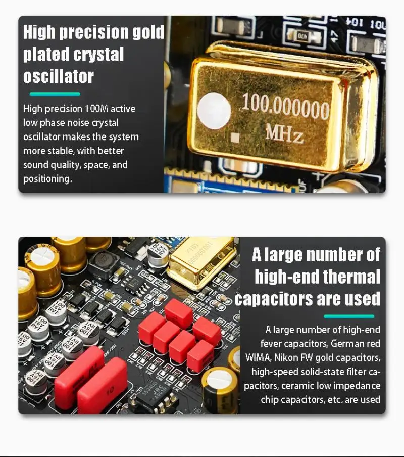 2.La placa de circuito ha sido cuidadosamente compuesta y diseñada, con 4 amplificadores operacionales duales reemplazables, condensador de filtro Nikon montado en oro, osciladores de cristal activo de alta precisión, condensadores de audio WIMA y otras piezas profesionales, en el mismo grado son raros.