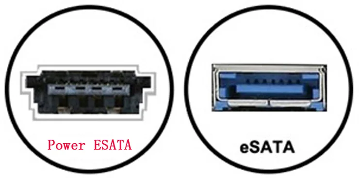 Este Puerto Power Over eSATA combina eSATA y USB y permite, con la ayuda de los dos contactos dorados, una fuente de alimentación de 12 V. Por lo tanto, no necesita ninguna fuente de alimentación adicional para un 2,5 o 3,5 HDD.