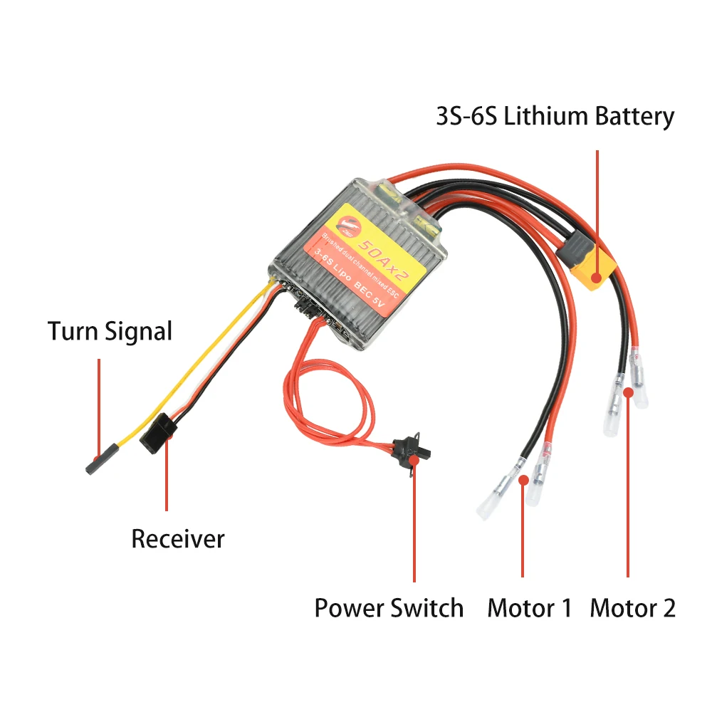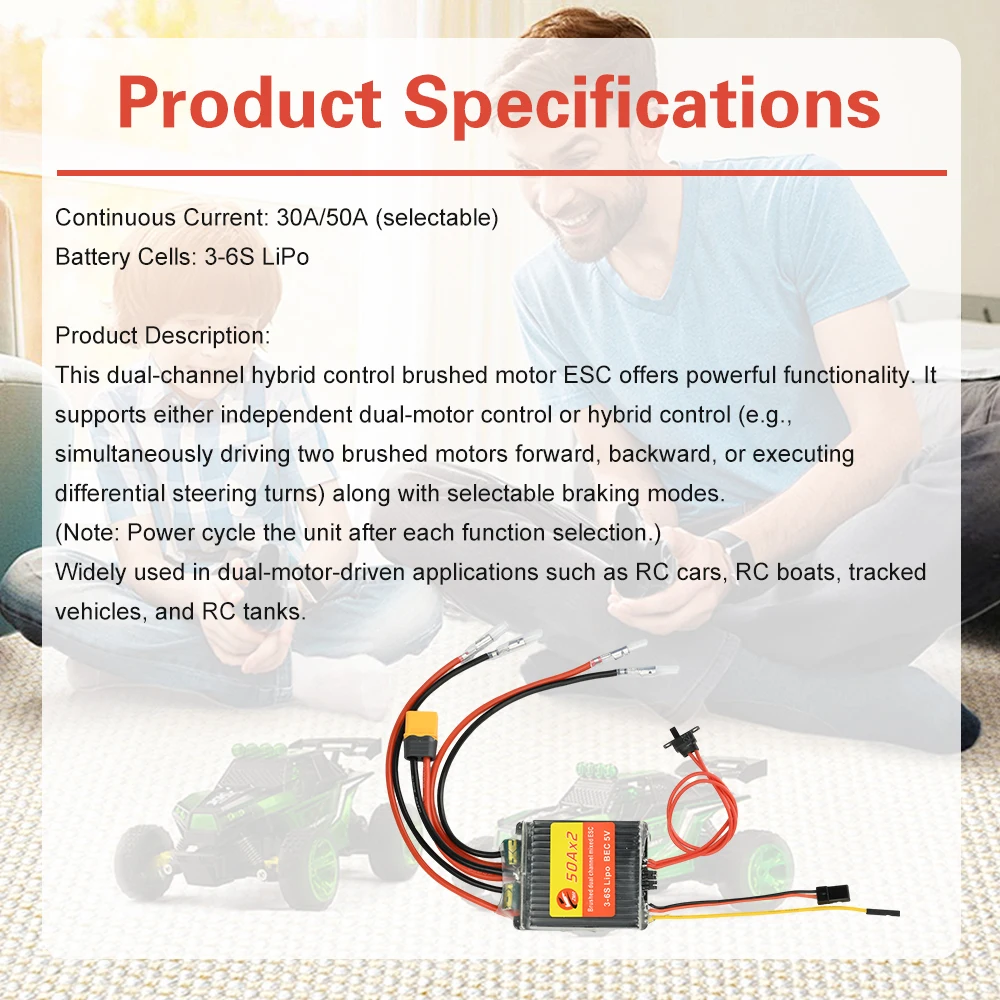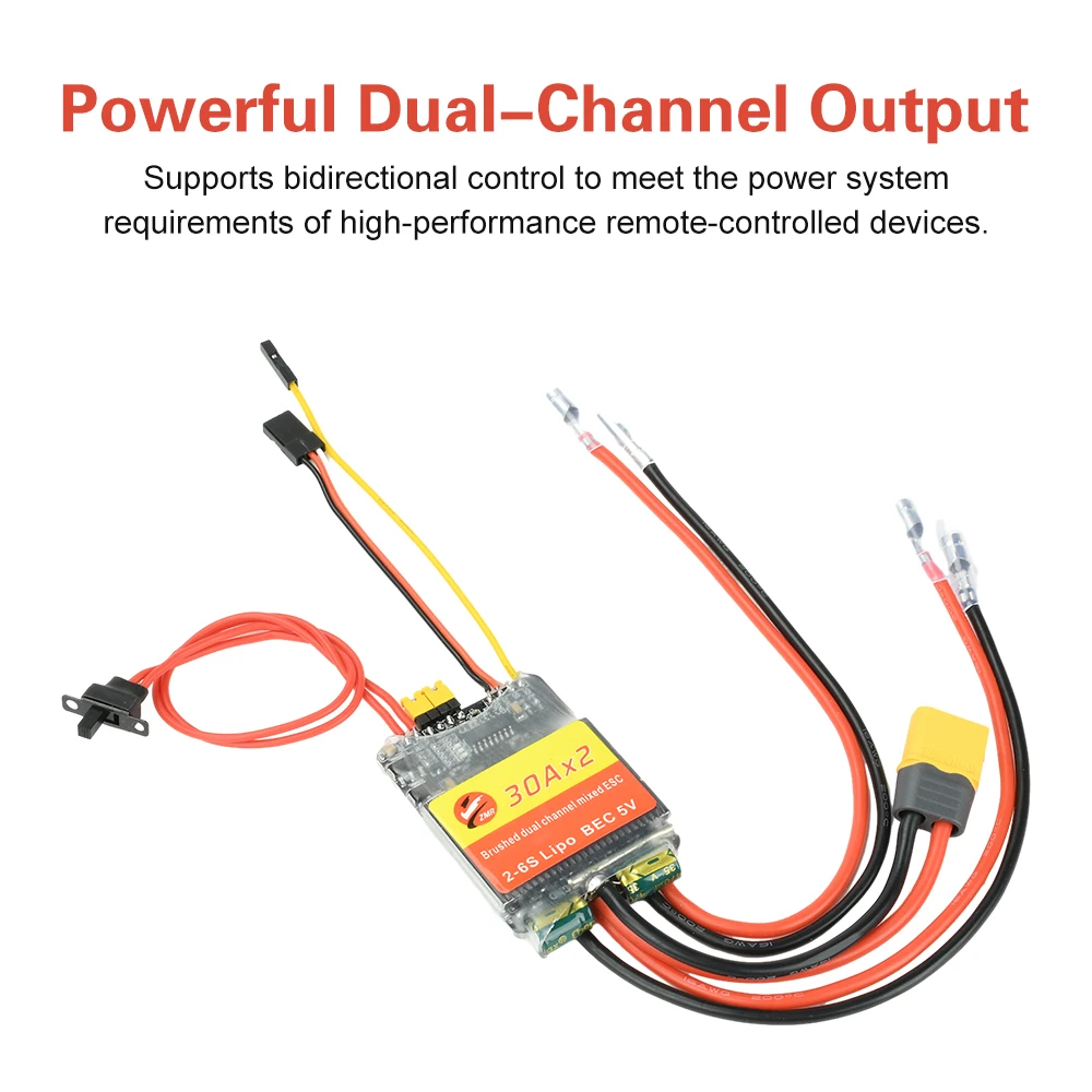1 x 30A 50Ax2 Dual Way Bidirectional Brushed ESC Control For Rc Model Boat/Tank/Car/Tracked Vehicles Brushed Motor