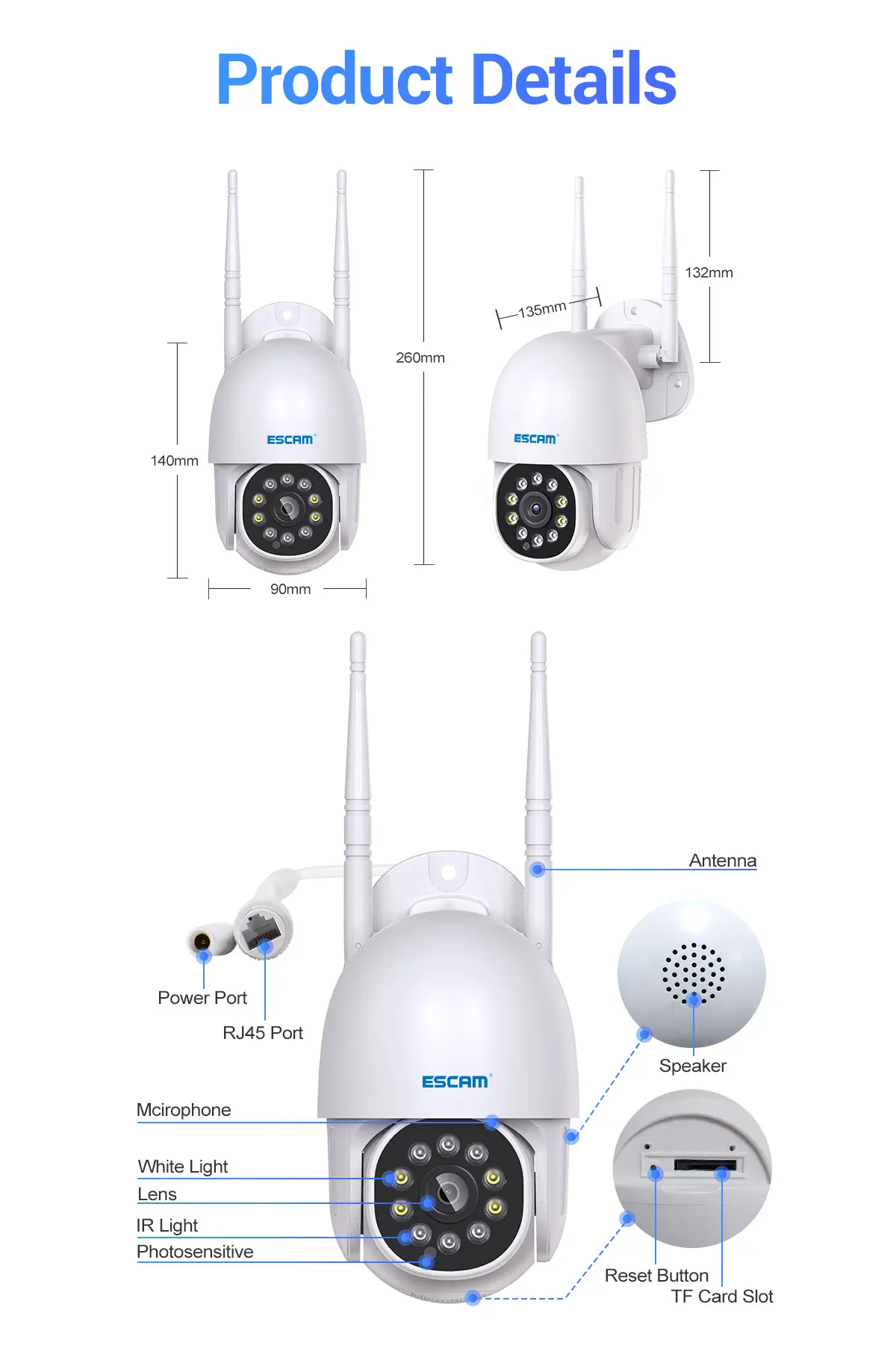 Comprar ESCAM-cámara IP con Audio bidireccional, dispositivo de vigilancia con detección humanoide IA, almacenamiento en la nube, impermeable, WiFi, 1080P, PT202