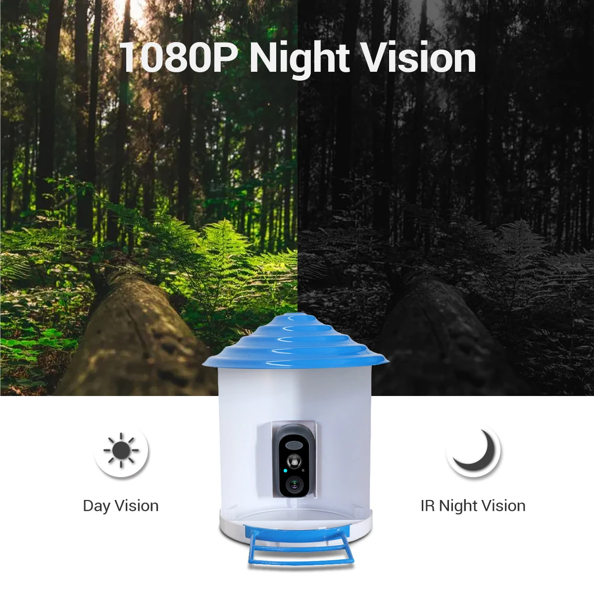4,4. Detección de movimiento PIR, con comedero para pájaros, especialmente para pájaros, APP de alarma push.