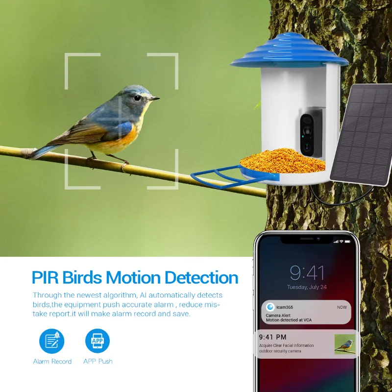 4,4. Detección de movimiento PIR, con comedero para pájaros, especialmente para pájaros, APP de alarma push.