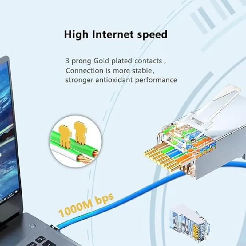 Compatibilidad Categoría 6-Clasificado para una red compatible con el canal Gigabit Ethernet, estos conectores chapados en oro son compatibles con cables sólidos y trenzados, funcionan para todos los estilos de conectores Keystone y acoplador en línea Keystone RJ45, Y admite cable de red redondo o plano de 24 a 26 AWG, ¡CAT6 23awg solo es compatible con cable sólido!