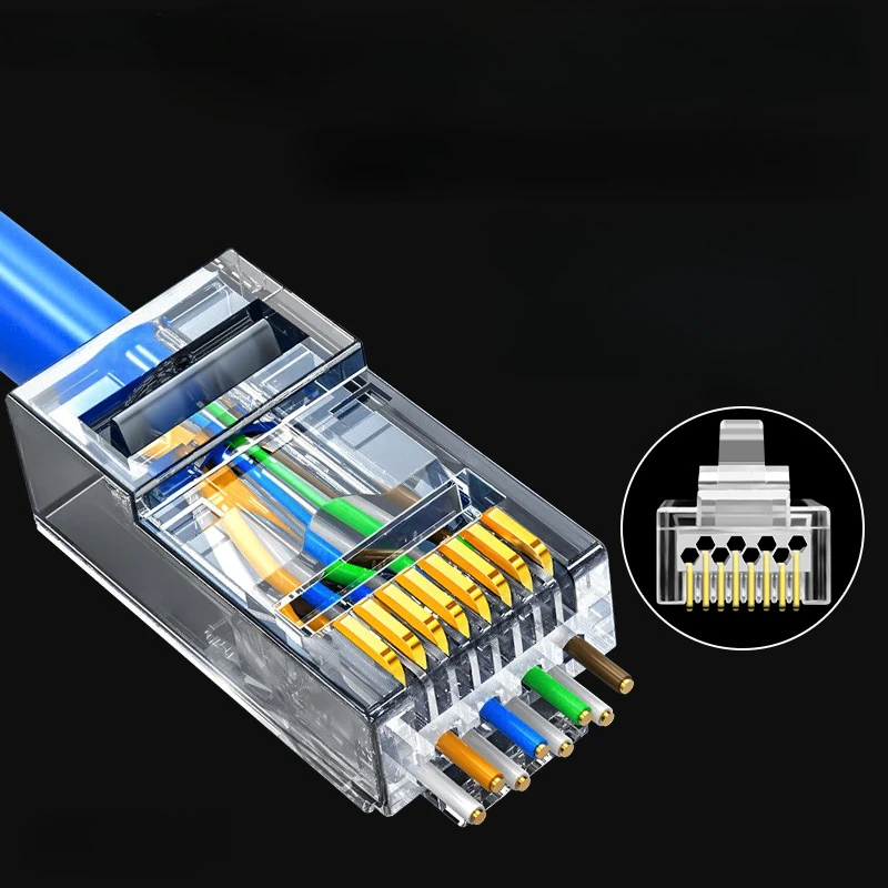 Conectores de paso RJ45 Cat6 de 10/30 piezas, EZ a enchufe modular de crimpado para cable de red UTP sólido o trenzado