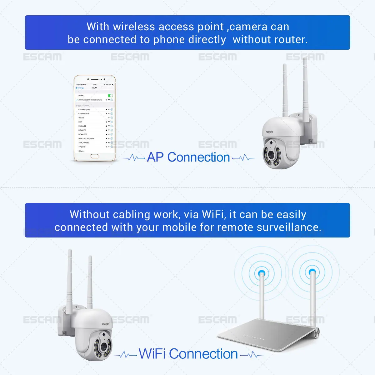 Comprar ESCAM-detección de movimiento WNK710, conexión WIFI, Voz bidireccional de 3MP, fuente de luz dual inteligente, visión nocturna, cámara H.265