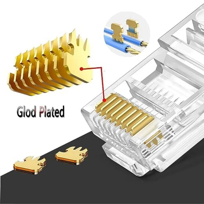 Rendimiento óptimo-Los conectores transparentes sin blindaje reducen la distancia entre los giros de los cables y los contactos. Aseguran una conexión sólida para el mejor rendimiento que inhibe el ruido de frecuencia