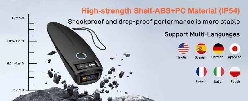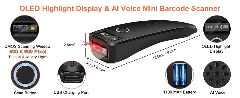 * Alta calidad: código de barras 2D La carcasa de alta resistencia del escáner está hecha de materiales ABS y PC, que son a prueba de golpes y caídas, con un rendimiento más estable y resistencia al agua IP54.Pantalla OLED de alto brillo, ventana de escaneo semiconductor de 800*600 píxeles, luz auxiliar incorporada, escaneo más conveniente.