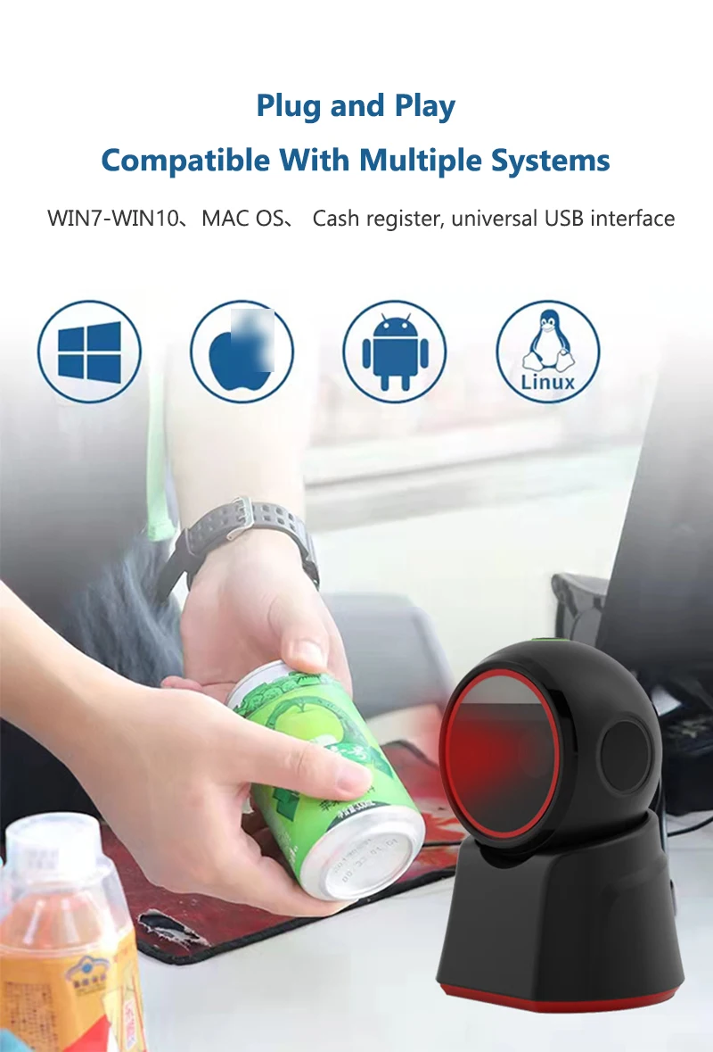 ▶ Plug and play, no requiere controlador ni software.Nuestro escáner de códigos de barras de escritorio admite conexión directa a su computadora portátil, PC o máquina POS mediante un cable de datos USB.