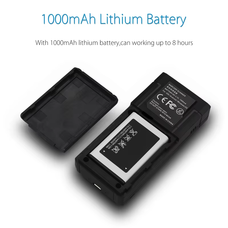 2.Mini escáner de código de barras portátil Bluetooth CCD 1D con batería recargable de iones de litio de 1000mAh.