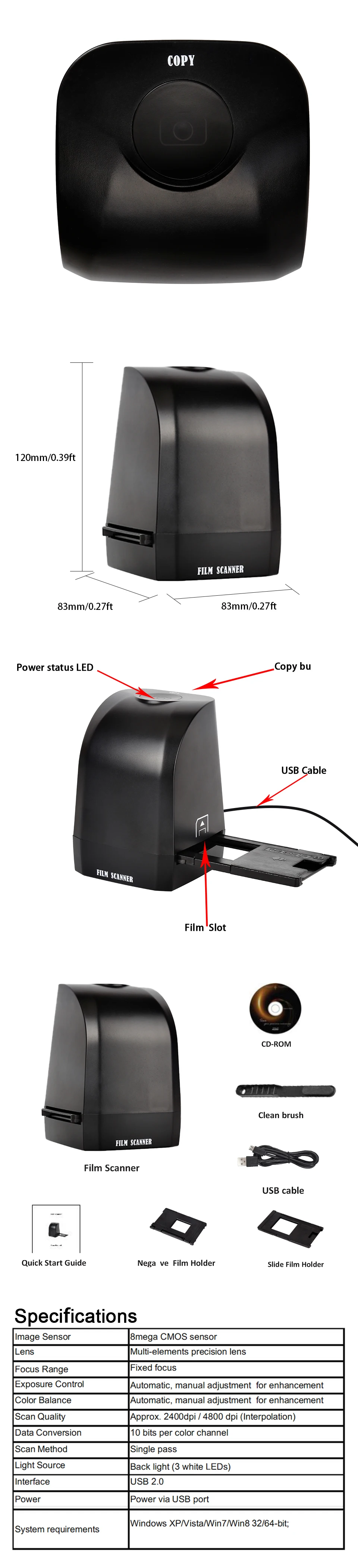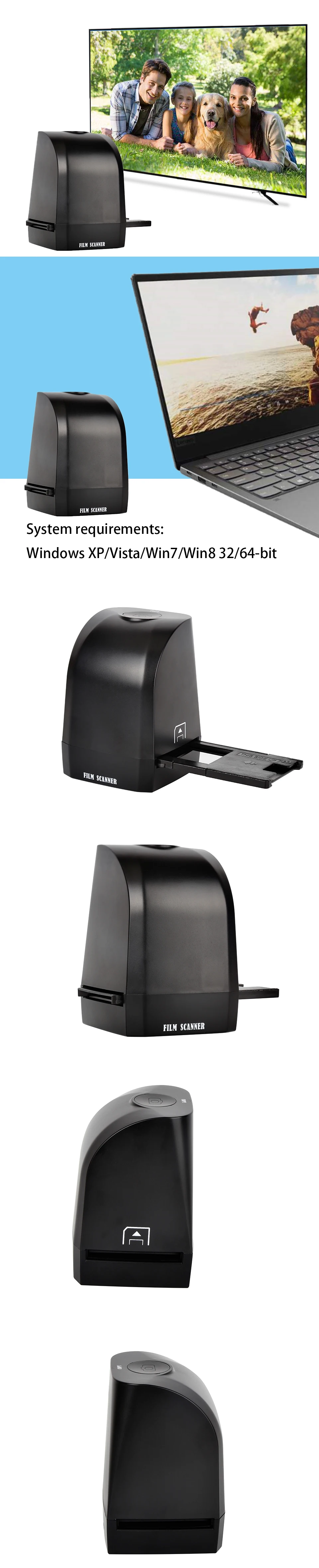 Escáner digital de película portátil de 35mm y 135mm, escáner de fotos a color de 8MP, convierte los negativos de película y diapositivas directamente en tu computadora