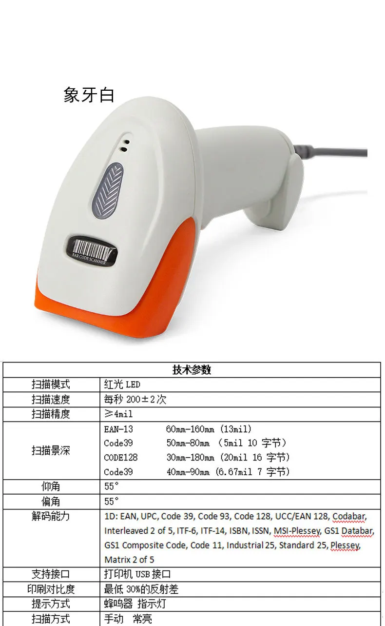 Escáner de código de barras 1D de mano universal, puede completar una variedad de lectura de código 1D