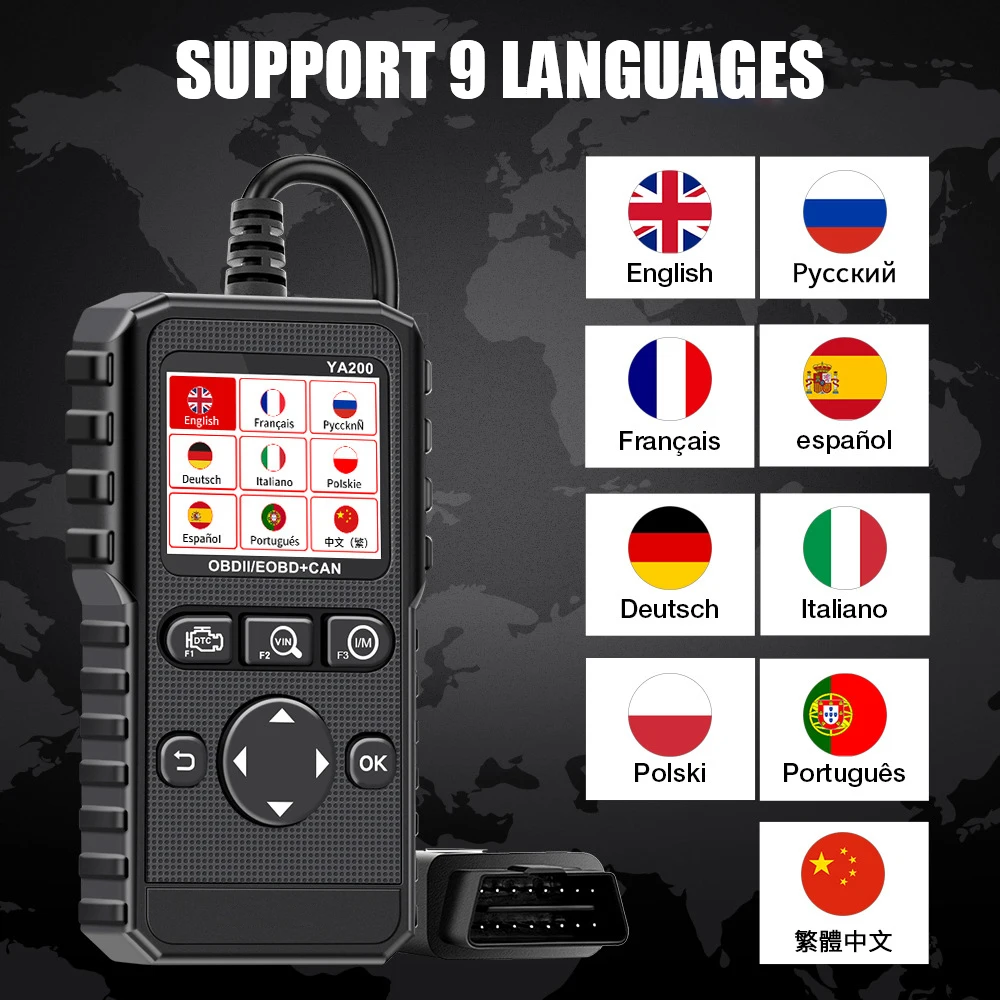 • Compatible con la mayoría de los coches :El escáner obd2 ya200 es compatible con la mayoría de los automóviles, lo que lo convierte en una herramienta versátil para cualquier propietario de automóvil.