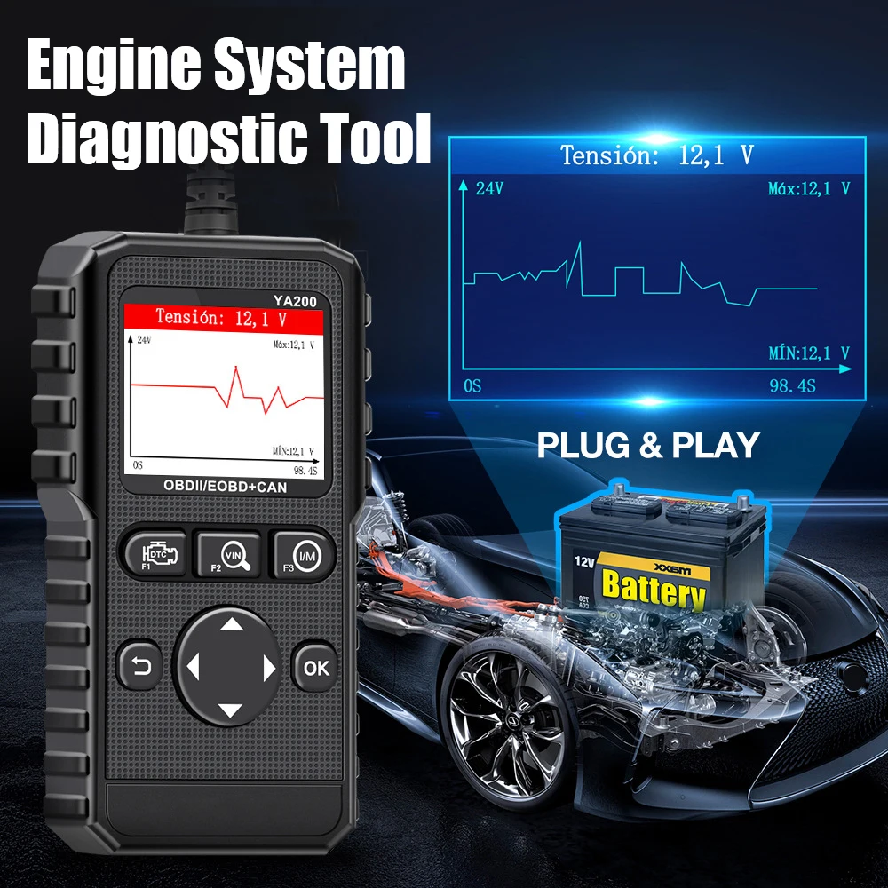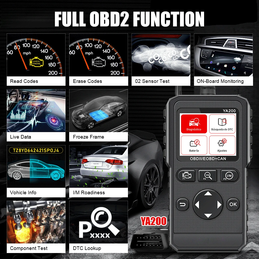 • Herramienta de diagnóstico de grado profesional :El escáner OBD2 YA200 es una herramienta de diagnóstico de grado profesional que puede ayudarlo a diagnosticar y solucionar problemas con el sistema del motor de su automóvil.