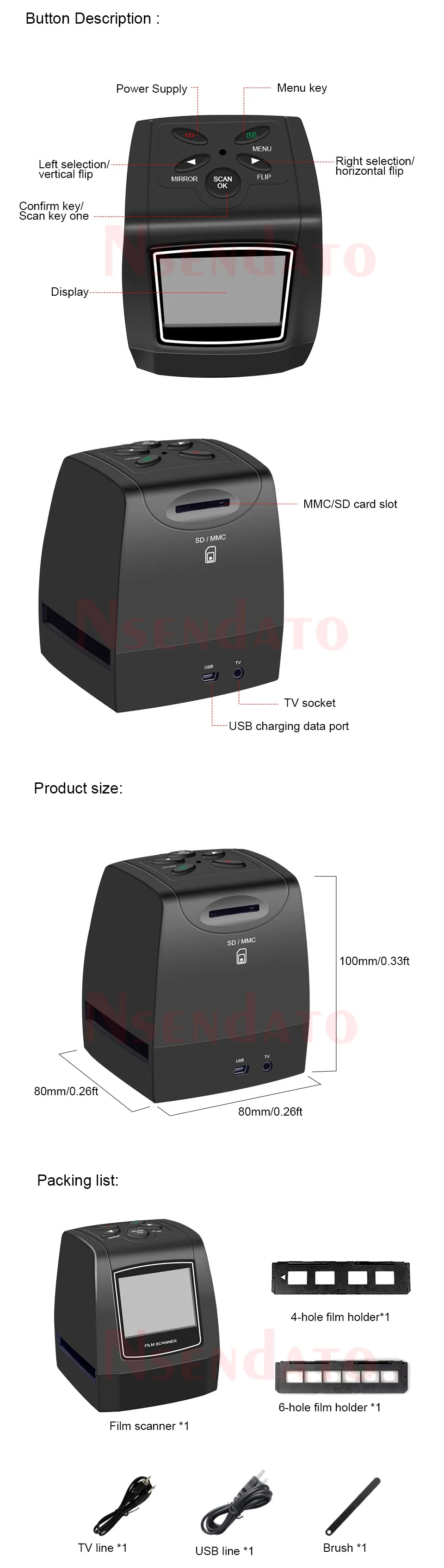 Escáner visor de diapositivas de película negativa MSDC de 5MP, USB MSDC, 35mm, 2.3", LCD Digital, pantalla fotográfica a Color, convertidor de película, escáner de tarjeta SD