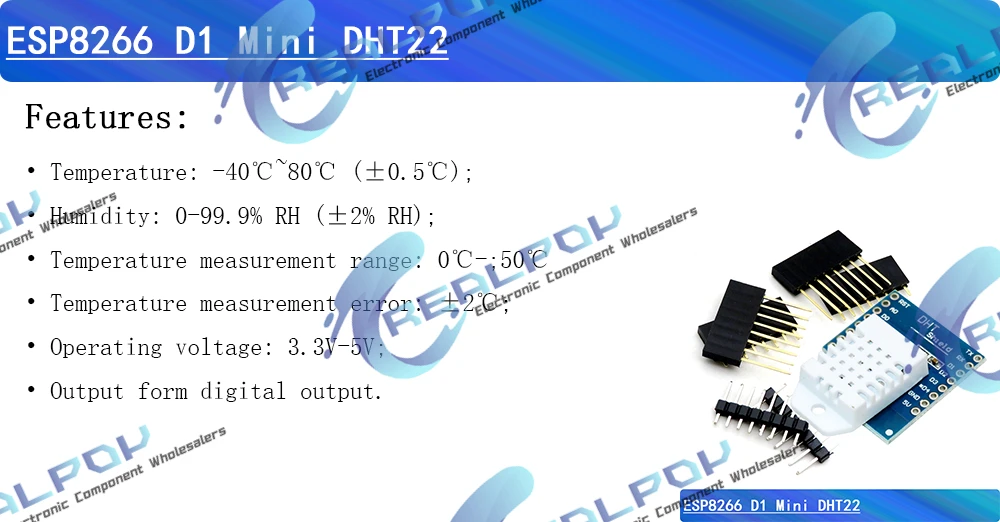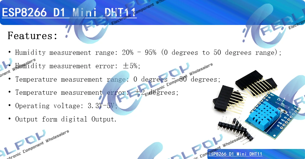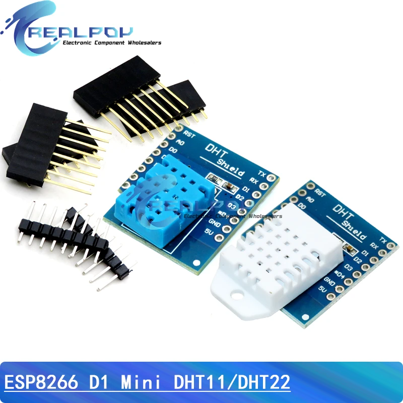 Comprar Escudo DHT para Wemos D1 Mini DHT11 DHT22 Módulo de Sensor de temperatura y humedad Digital de un solo Bus con pines a juego