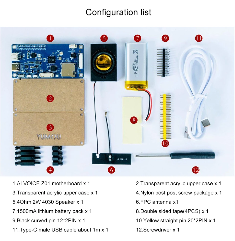 1.Placa principal AI_VOICE_Z01 × 1