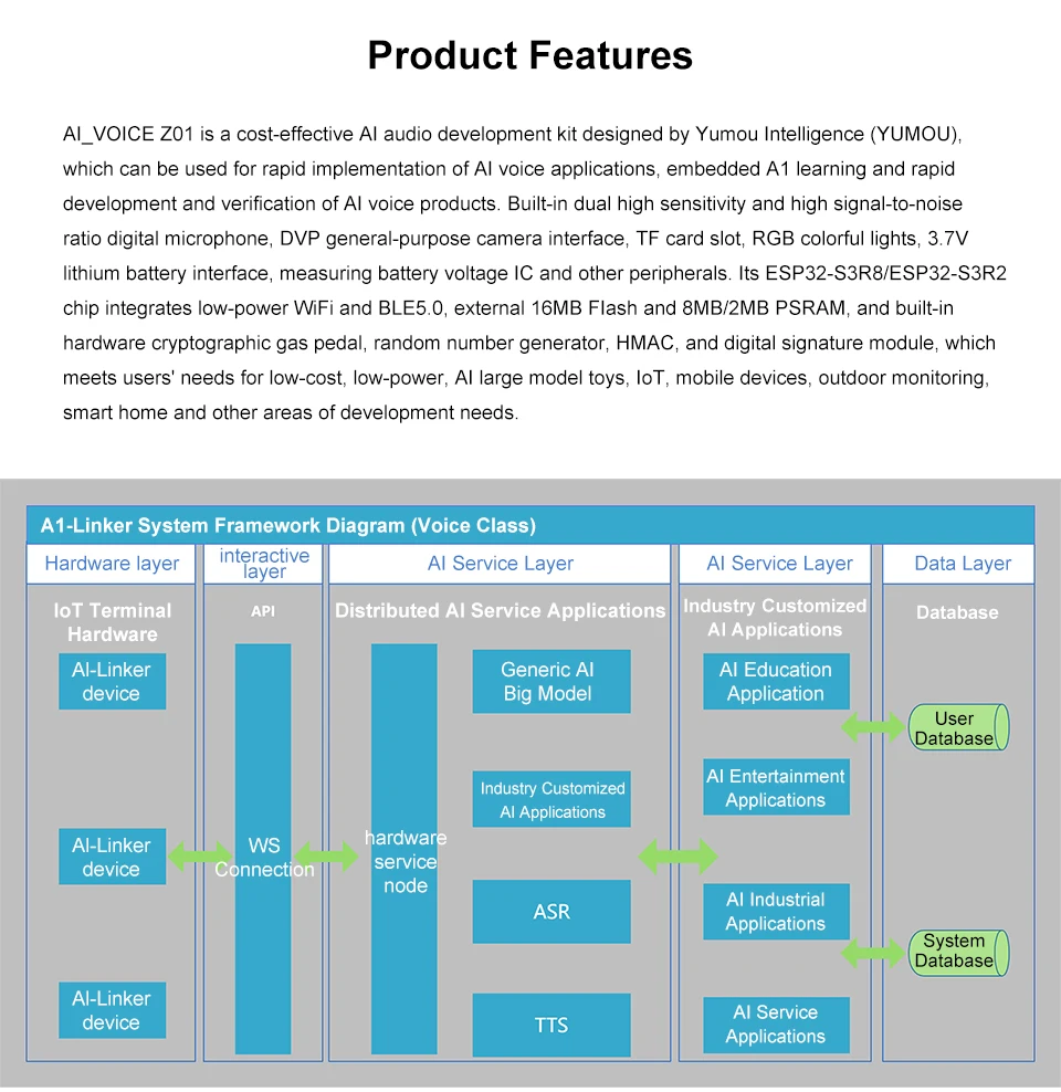Comprar ESP32-AIVoice-Z01 AI Kit de desarrollo de modelo grande (LLM) ChatGPT-4o/Llama 3 Asistente de voz Chatbot, soporte multimodelo