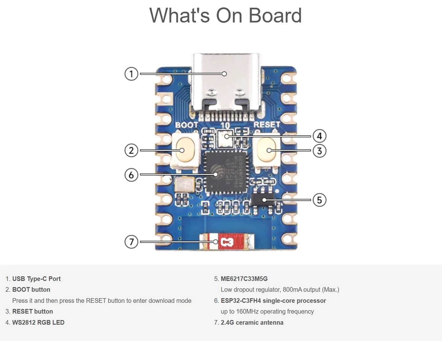 Basado en ESP32-C3FH4, pines GPIO multifunción integrados
