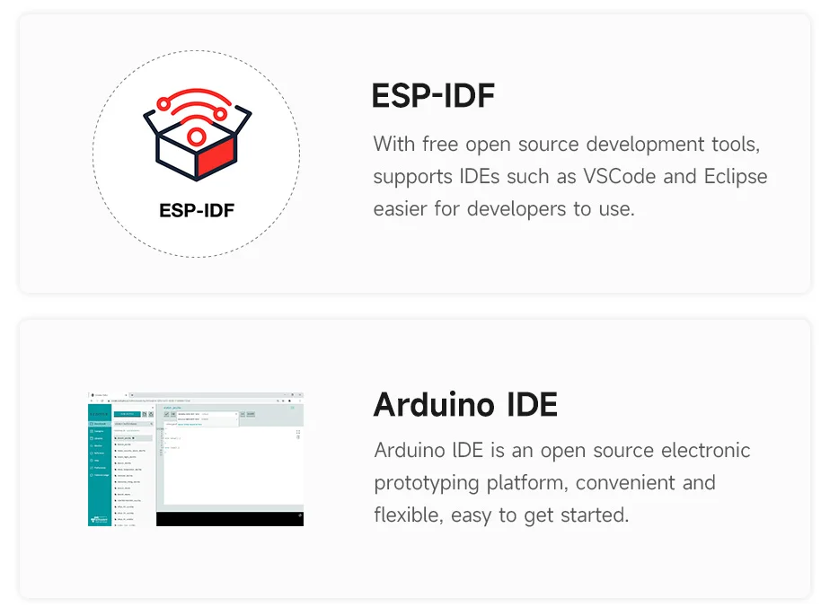 Equipado con procesador RISC-V de 240 MHz, 384 KB de RAM estática, 16 MB de Flash y proporciona opciones para PSRAM de 4 MB o 8 MB, permite el manejo estable de las tareas simultáneas de múltiples pilas de protocolos y la ejecución de aplicaciones de carga media.Los desarrolladores pueden aprovechar cuadros de desarrollo maduros como ESP-IDF y Arduino para creación rápida de prototipos e implementación de productos, lo que lo hace adecuado para escenarios de IoT como puertas de enlace inteligentes e integración de dispositivos multiprotocolo.