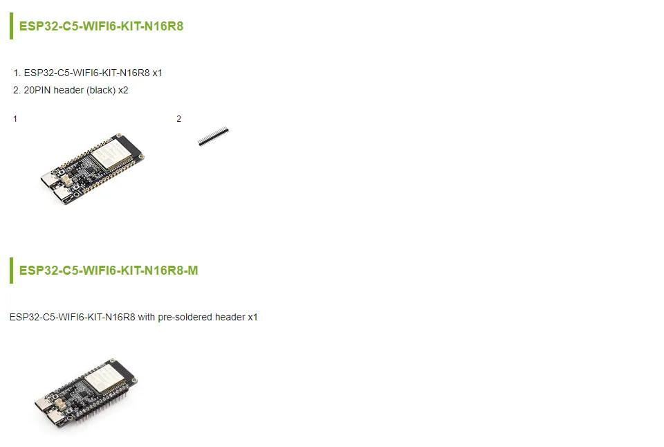 El ESP32-C5-WIFI6-KIT es una placa de desarrollo diseñada por Waveshare basada en el módulo ESP32-C5-WROOM-1 para aplicaciones de puerta de enlace IoT multiprotocolo y Wi-Fi de doble banda.El ESP32-C5 es un chip RISC-V de un solo núcleo, admite Wi-Fi 6 de doble banda (2,4 GHz y 5 GHz) e integra protocolos BLE 5, Zigbee y Thread para un uso flexible como concentrador doméstico inteligente o protocolo cruzado. puerta de enlace de comunicación.