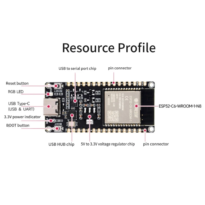Presenta interfaces periféricas ricas con pines en la placa de desarrollo de la ESP32-C6-DevKitC-1-N8.